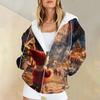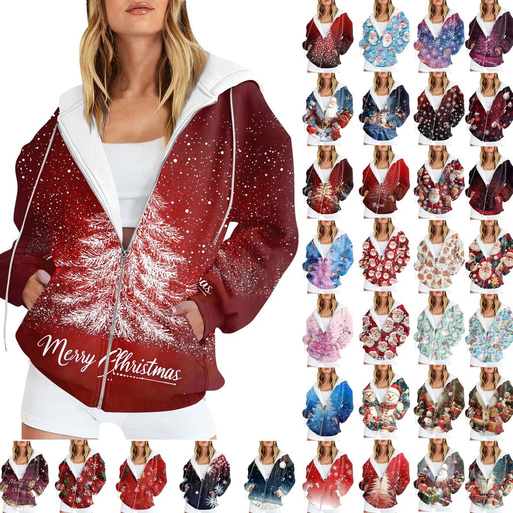 Женская мода повседневная рождественская принтовая толстовка зимняя с длинным рукавом кардиган куртка с карманом на молнии толстовка с капюшоном куртка