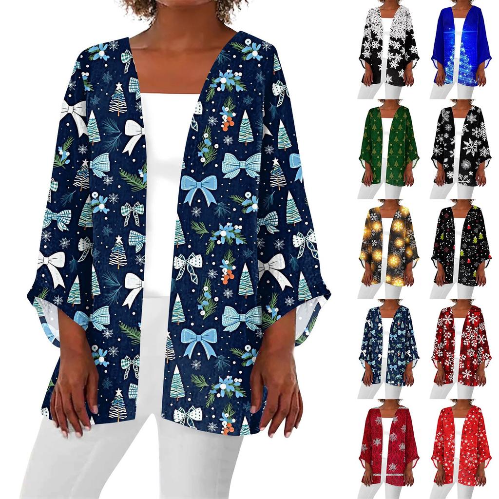 Женская повседневная мода Caot с рождественским принтом Легкая куртка средней длины Кардиган — купить товар онлайн с бесплатной доставкой по всему миру!