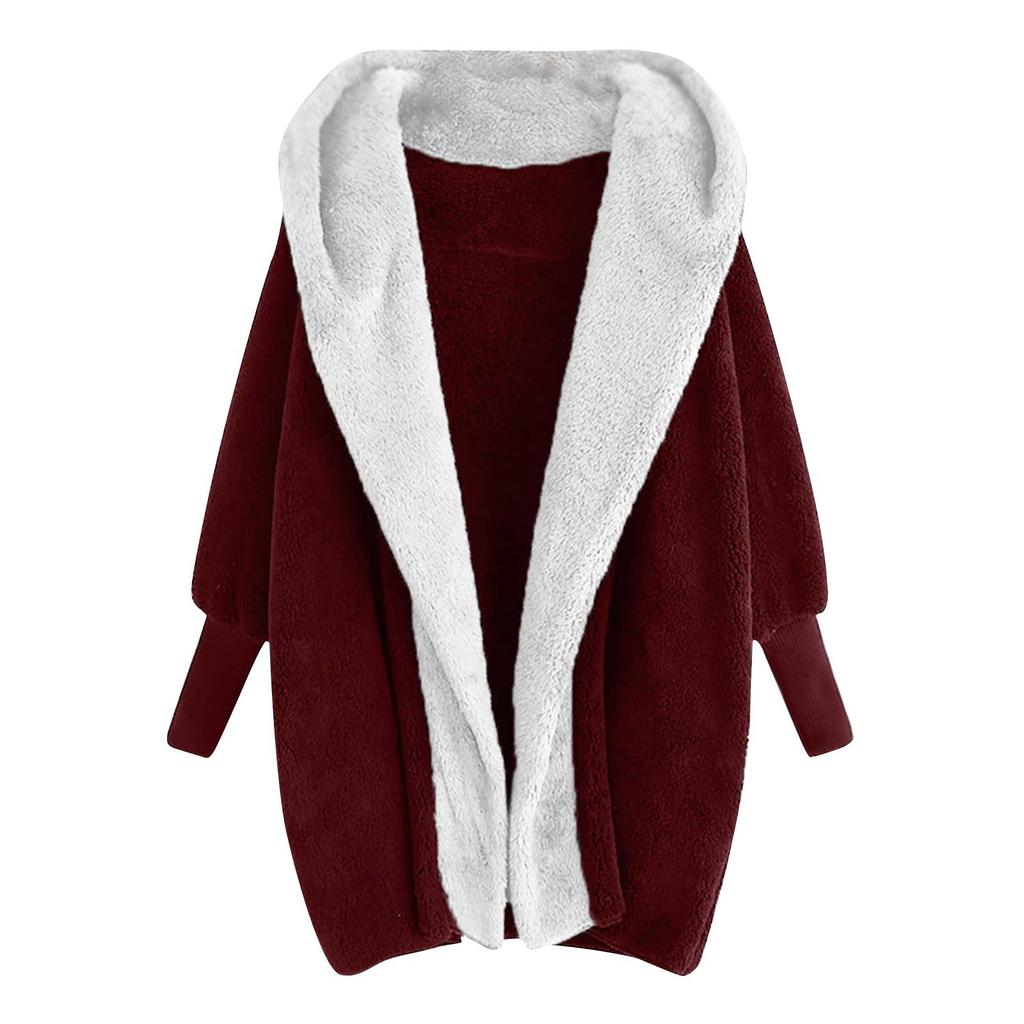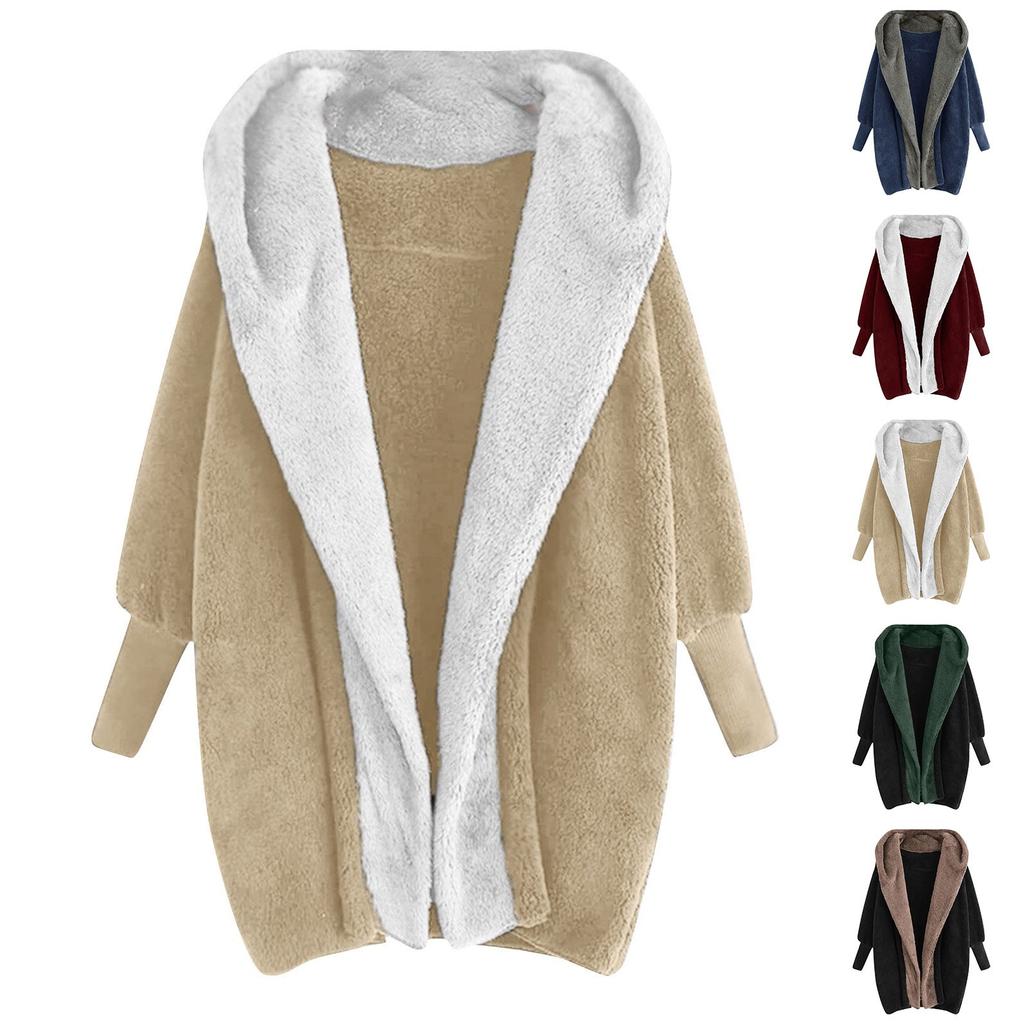 Женский модный длинный рукав с капюшоном и цветовым сочетанием, свободный плюшевый кардиган, пальто