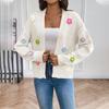 Женская мода, вязаный крючком цветок, милый вязаный кардиган, свитер, куртка, женский ленивый стиль, повседневный свободный свитер