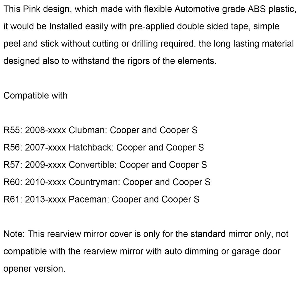 Rear View Mirror Cover for BMW MINI Cooper R55 R56 R57 Pink