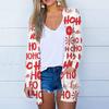 Женский модный повседневный кардиган средней длины с рождественским принтом, куртка, пальто с карманом