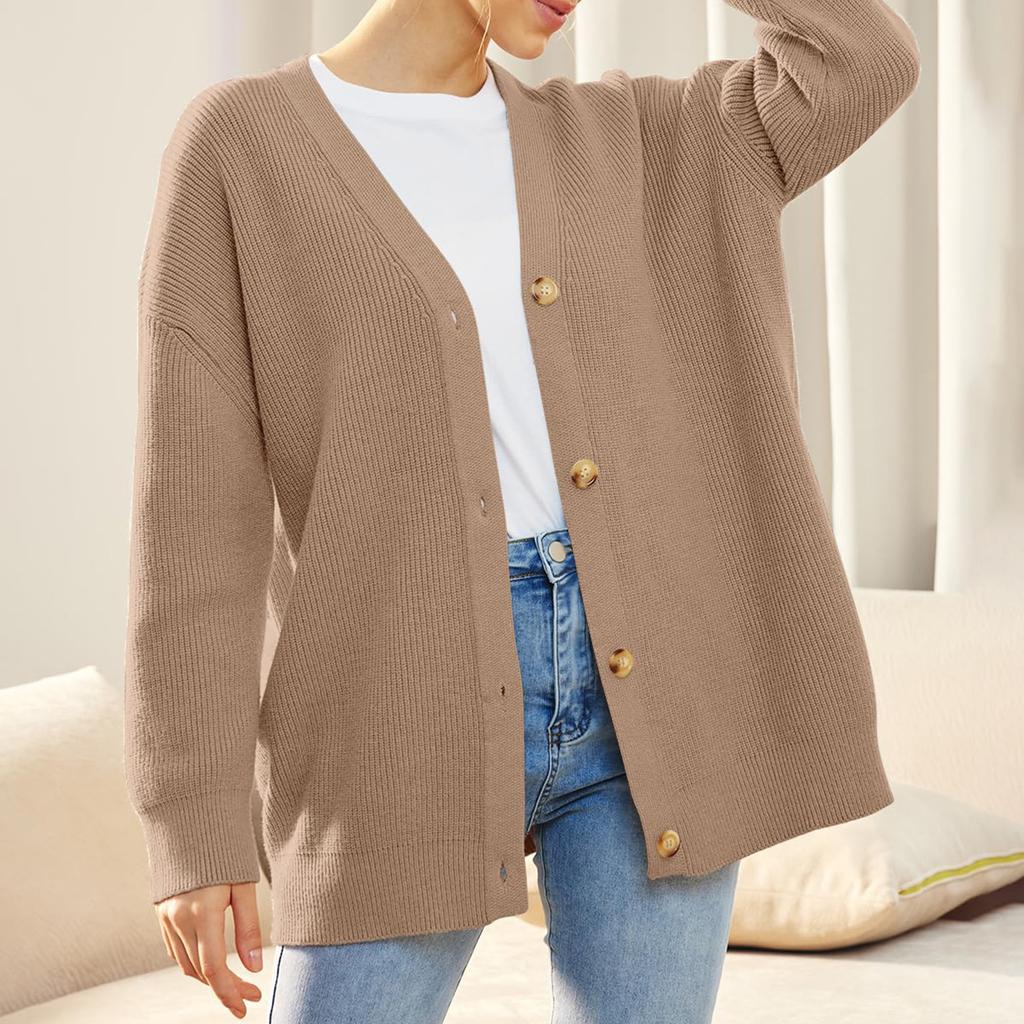 Характеристики: V-образный вырез, длинные рукава, открытая застежка, свободный крой, однотонный трикотаж, свободные кардиганы, теплые трикотажные куртки.