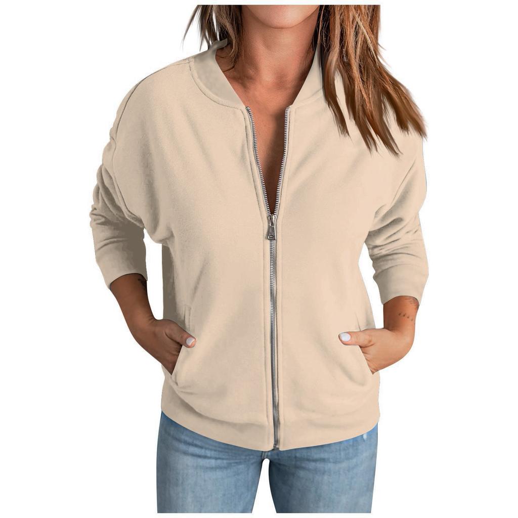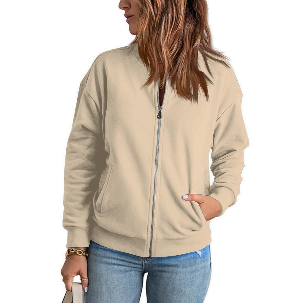 Женская повседневная толстовка, однотонная куртка на молнии, свободное пальто с длинными рукавами и карманом