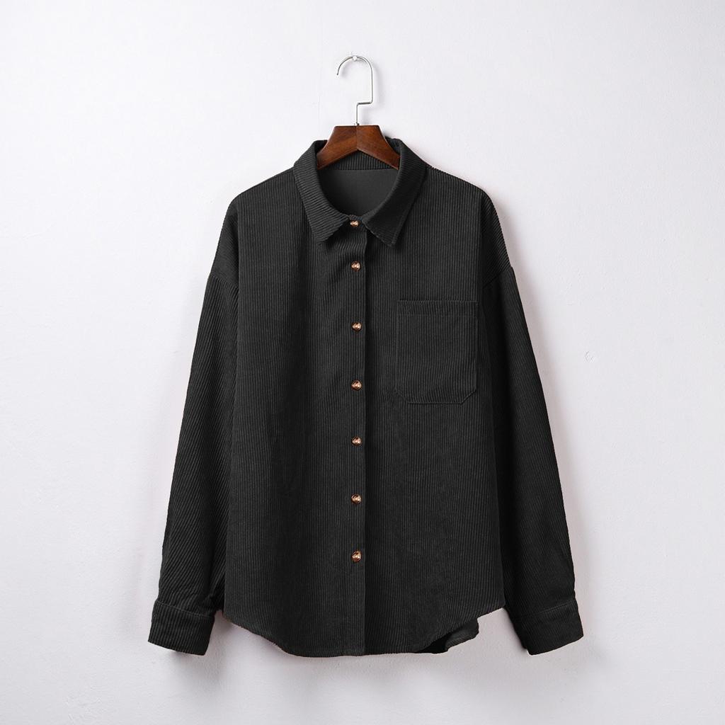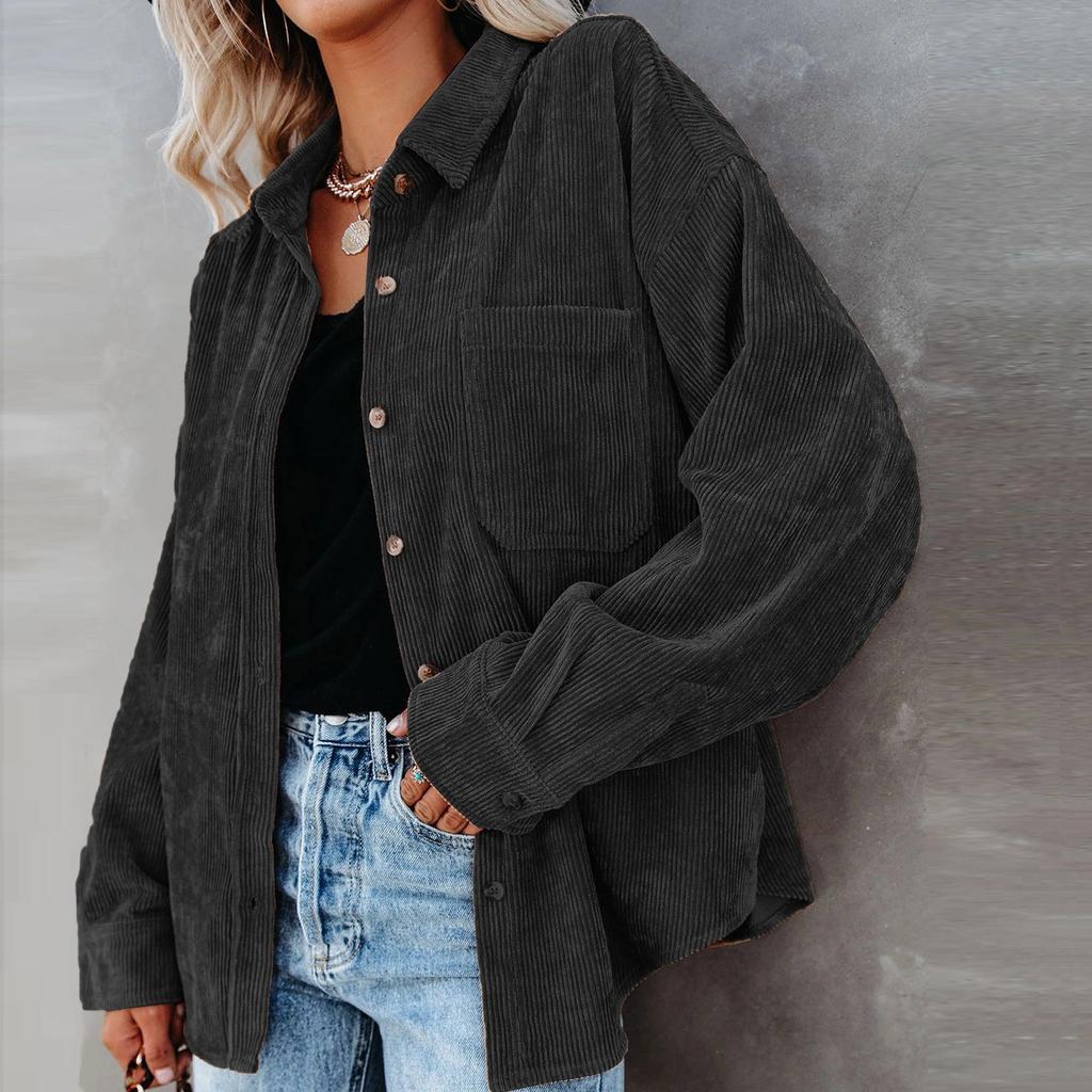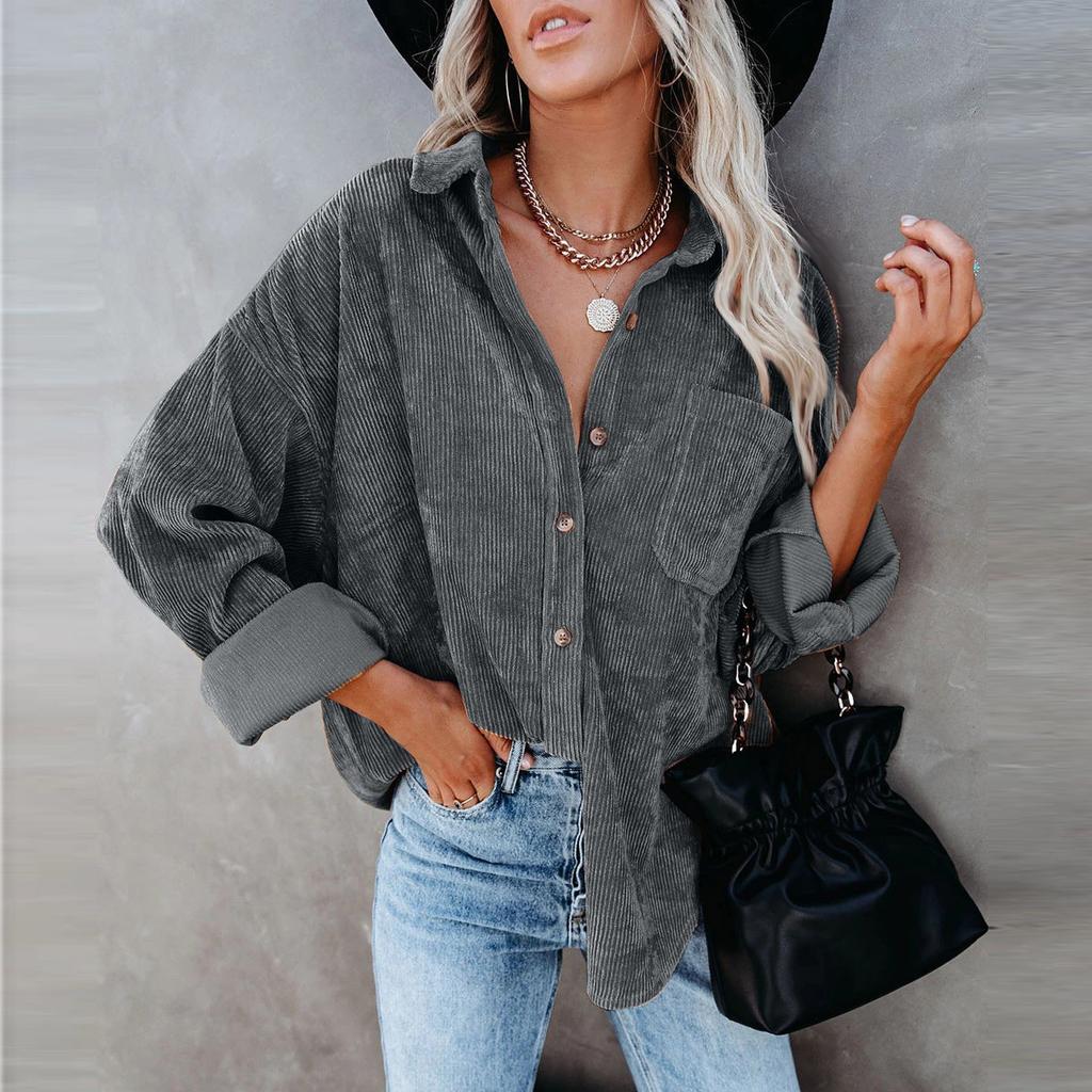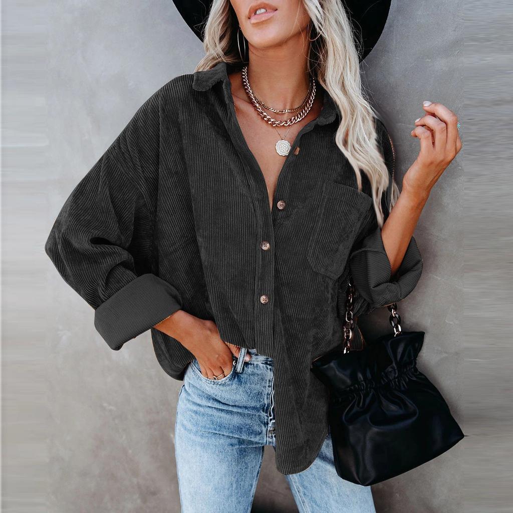 Женская повседневная вельветовая блузка с длинными рукавами и V-образным вырезом, повседневная блузка из 95% полиэфира, топы