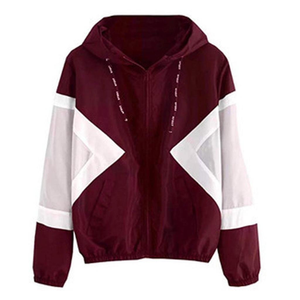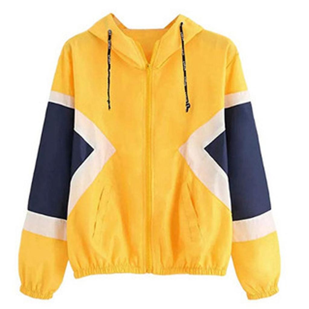 Женская ветровка контрастного цвета с капюшоном и застежкой-молнией с длинными рукавами