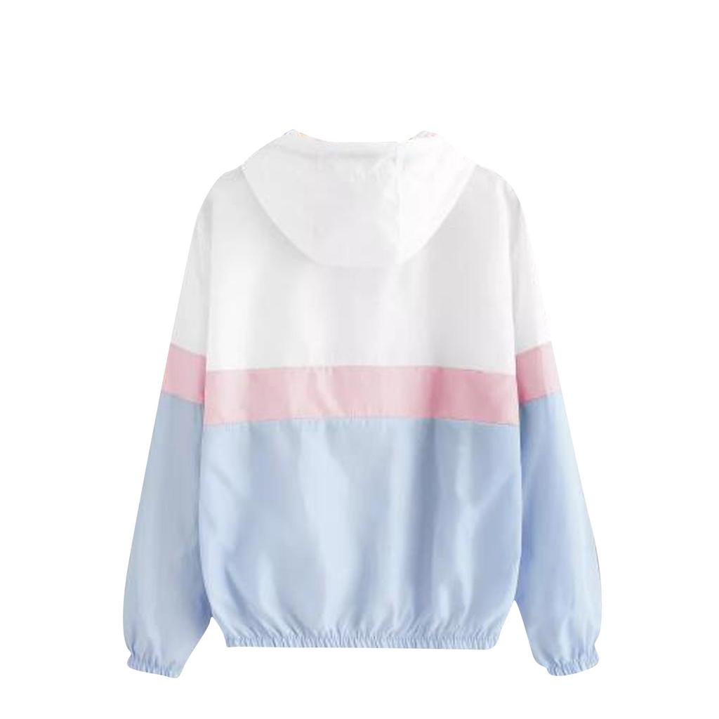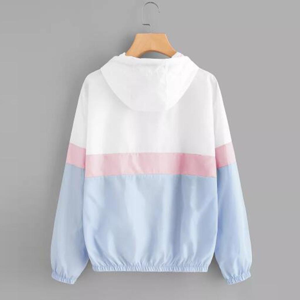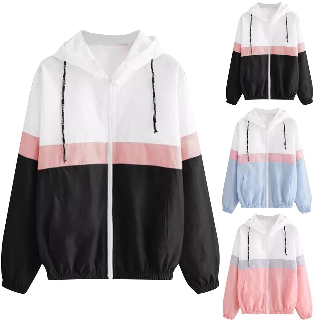Женская ветровка контрастного цвета с капюшоном и застежкой-молнией с длинными рукавами