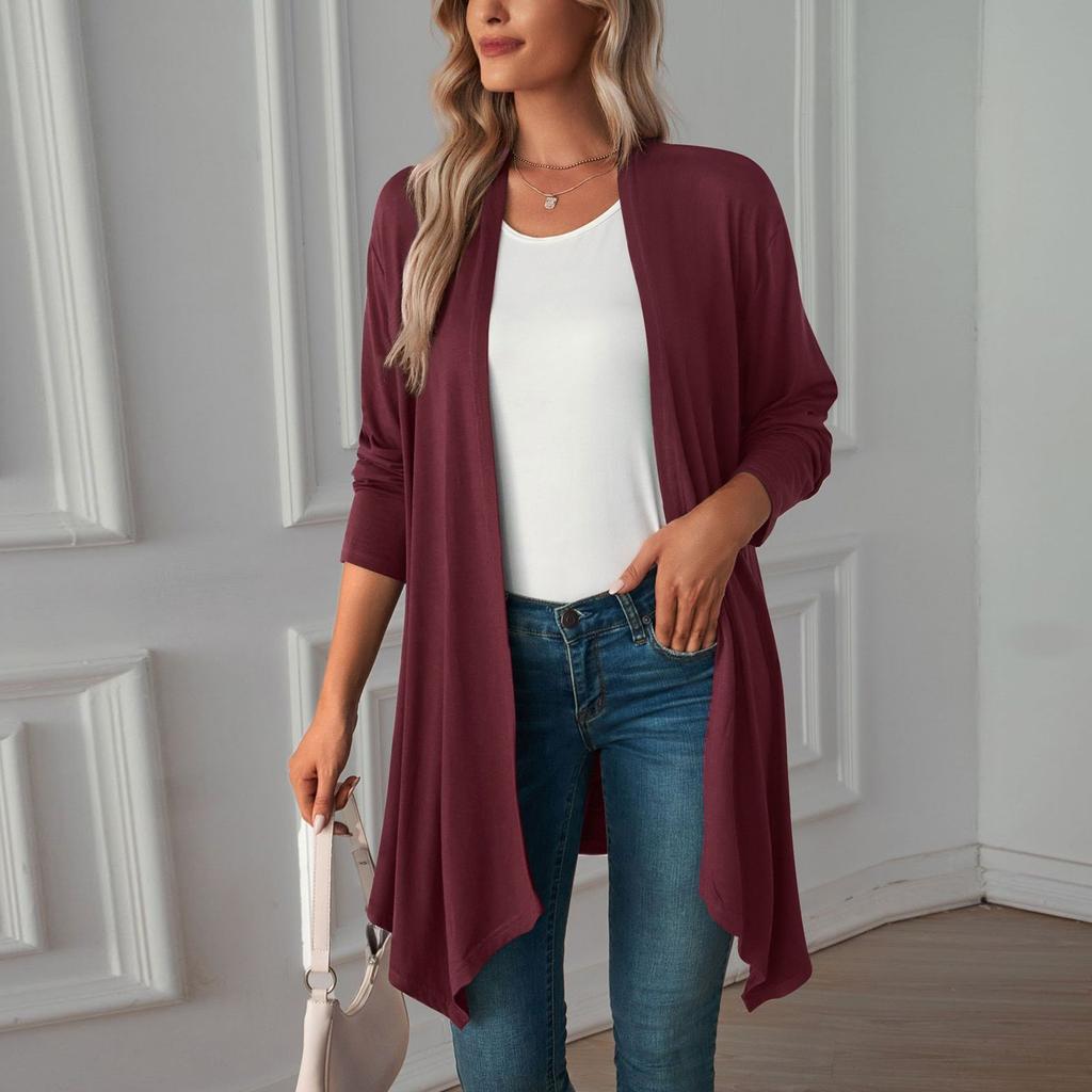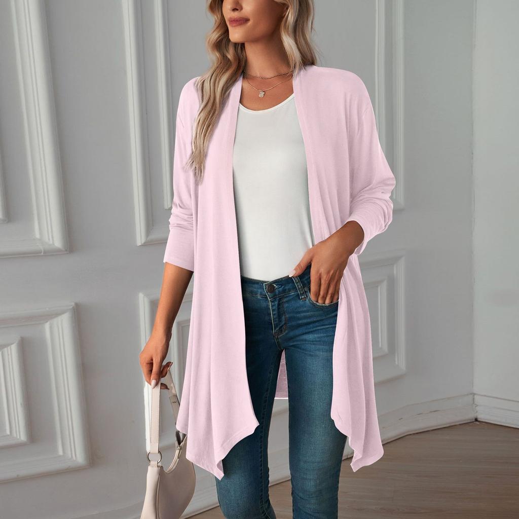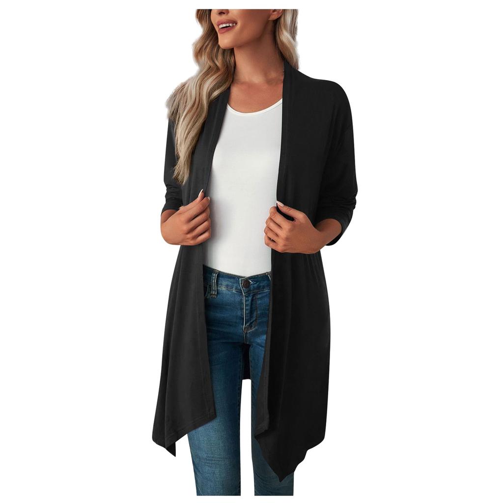 Женский однотонный топ, кардиган с длинными рукавами, легкая длинная куртка