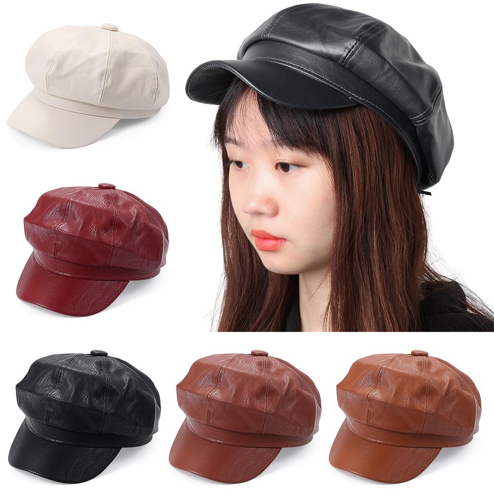 Повседневный берет из искусственной кожи, новая модная однотонная кепка, кепка газетчика, кепка с козырьком, кепка газетчика — купить товар онлайн с бесплатной доставкой по всему миру!