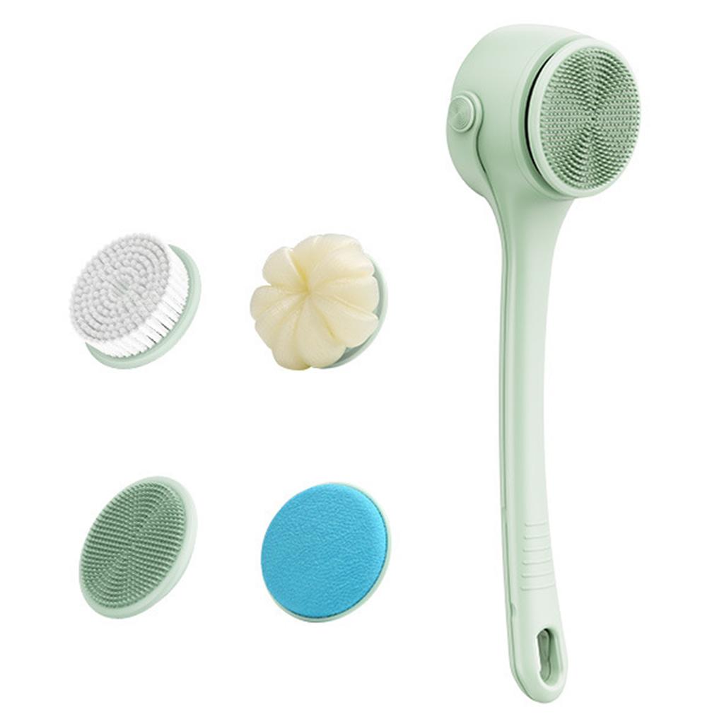 Водонепроницаемая электрическая щетка для тела для душа с длинной двойной ручкой и 4 сменными насадками для глубокого очищения и массажа кожи