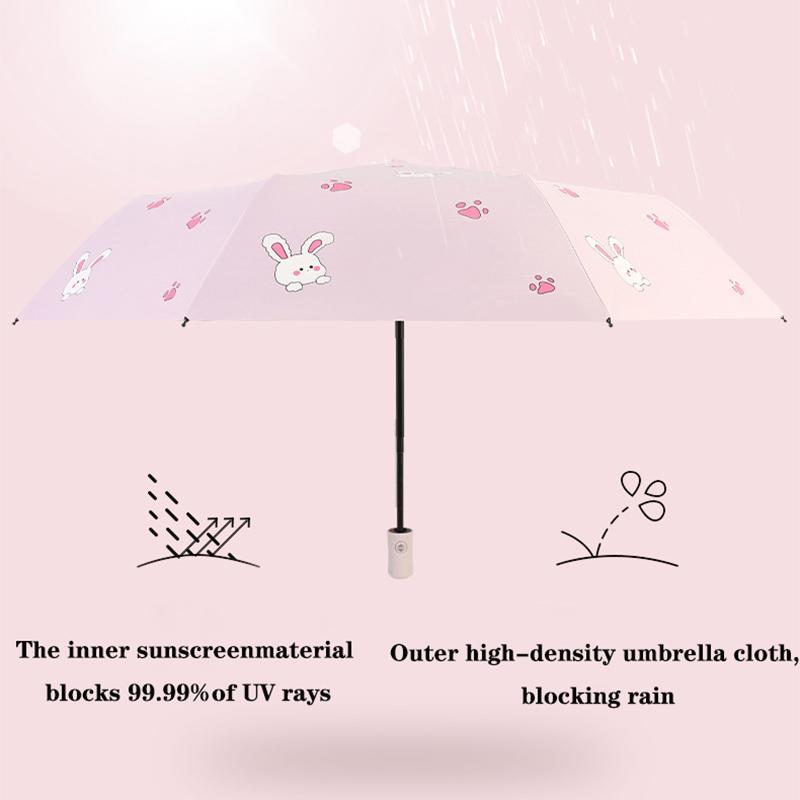 Зонт, зонтик, черная резиновая ткань для зонтов, кролики разных цветов, модный автоматический зонт, зонтик для взрослых и студентов