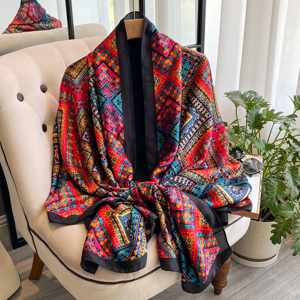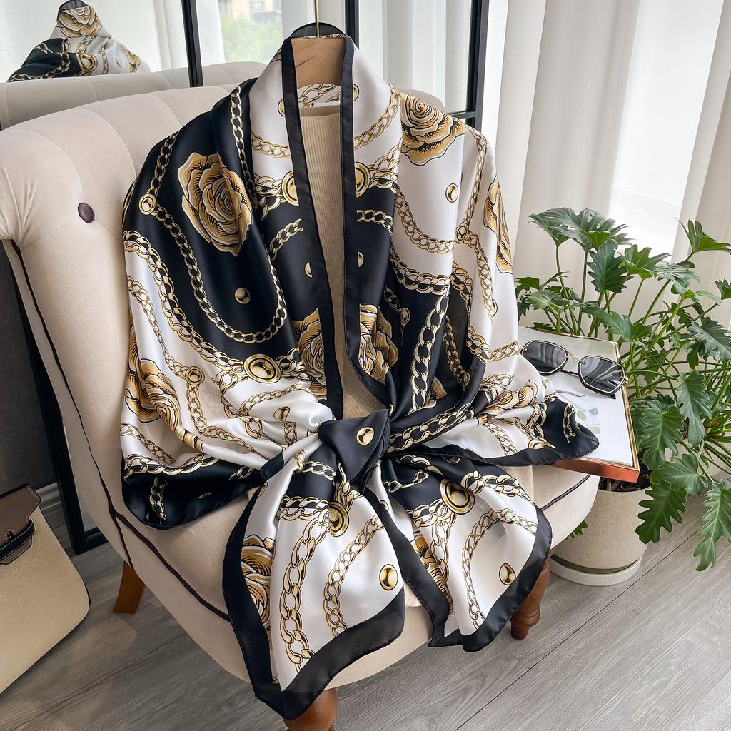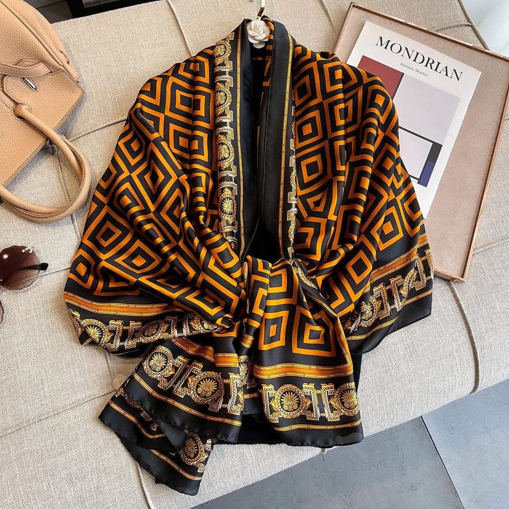 2025 Модный принт Большой шаль-накидка Шелковый шарф Женский Роскошный бренд Сатиновая повязка на голову Хиджаб Бандана Тюрбан Фуляр Летний пляж