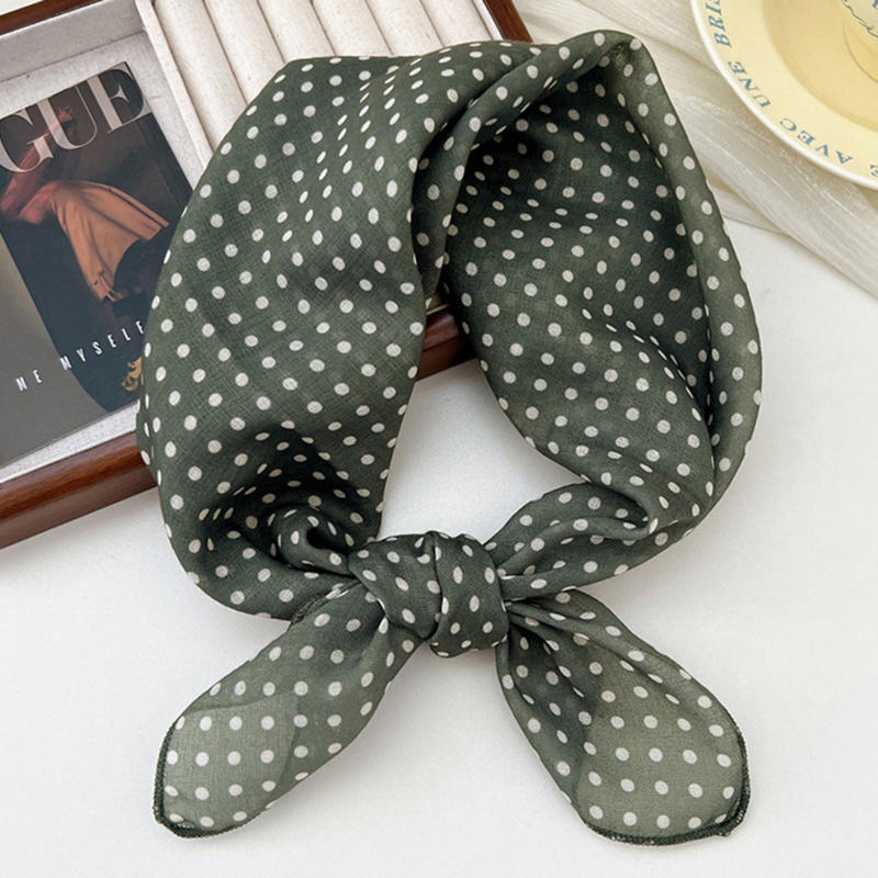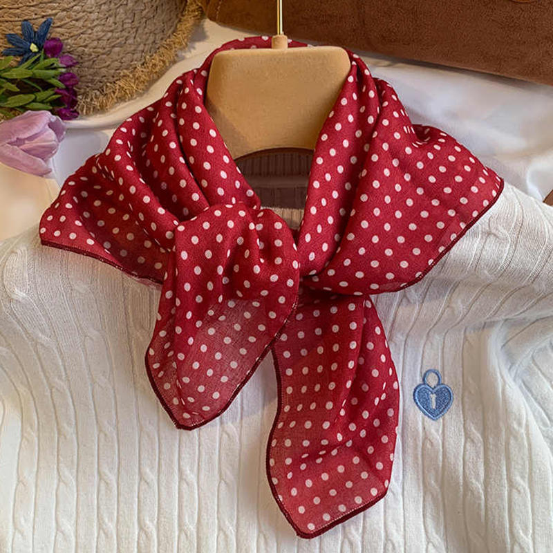 Хлопково-льняной квадратный шарф 58 см, ретро принт в горошек, шейный платок, женский, для волос, для сумки, на запястье, шарфы фуляр, бандана, шелковые шарфы