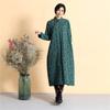 Осенне-зимнее этническое хлопково-льняное длинное платье на флисовой подкладке с застежками-лягушками и юбкой-фонариком.