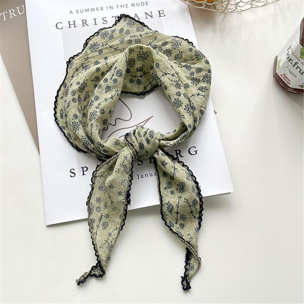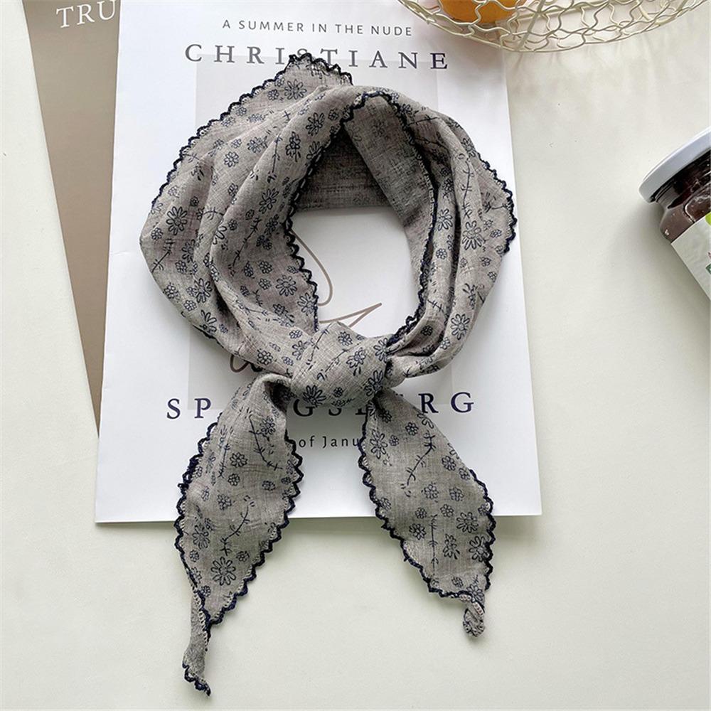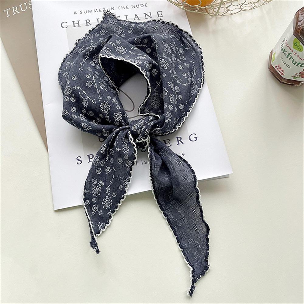 Легкий треугольный шарф с цветочным принтом в корейском стиле, повязка на голову, хлопково-льняной шарф, тонкая дышащая бандана на весну-лето для женщин