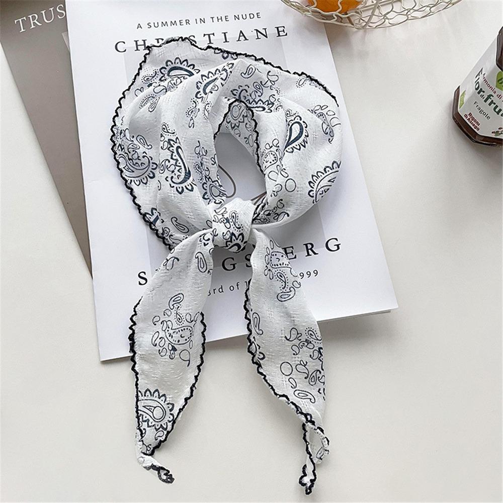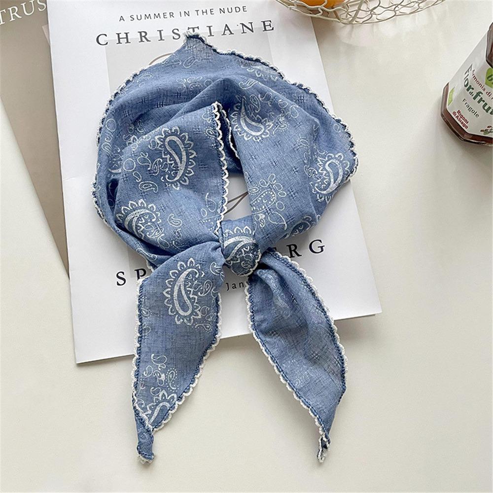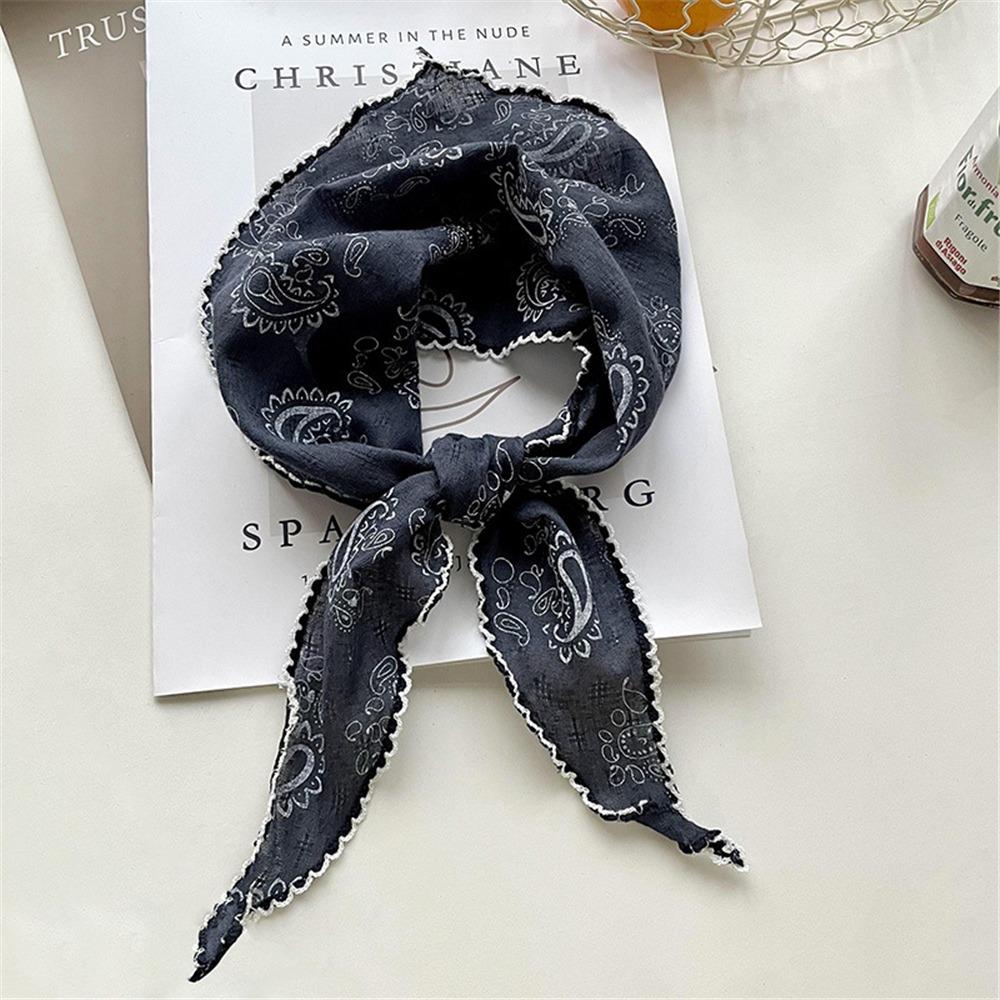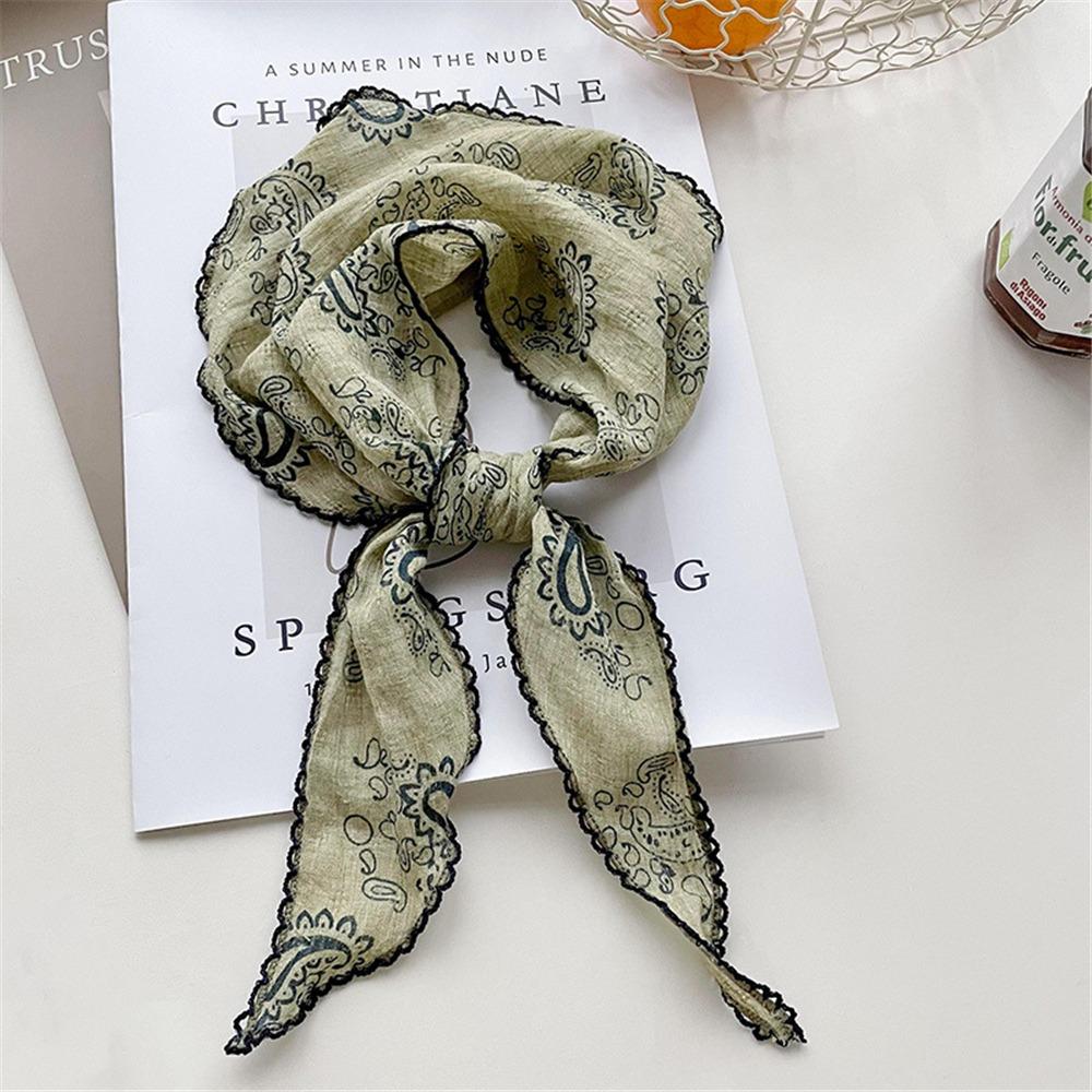 Легкий треугольный шарф с цветочным принтом в корейском стиле, повязка на голову, хлопково-льняной шарф, тонкая дышащая бандана на весну-лето для женщин
