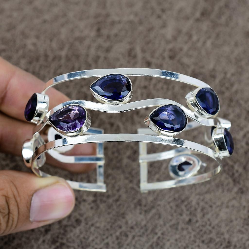 Аметист Драгоценный камень Ручная работа 925 Стерлинговое серебро Манжета Браслет Регулируемый KKG-206