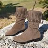 Винтажные матовые ботильоны с кисточками, женские осенние новые ботинки в западном стиле с круглым носком, натягивающиеся на ногу, с мягкой подошвой, нескользящие, средней высоты