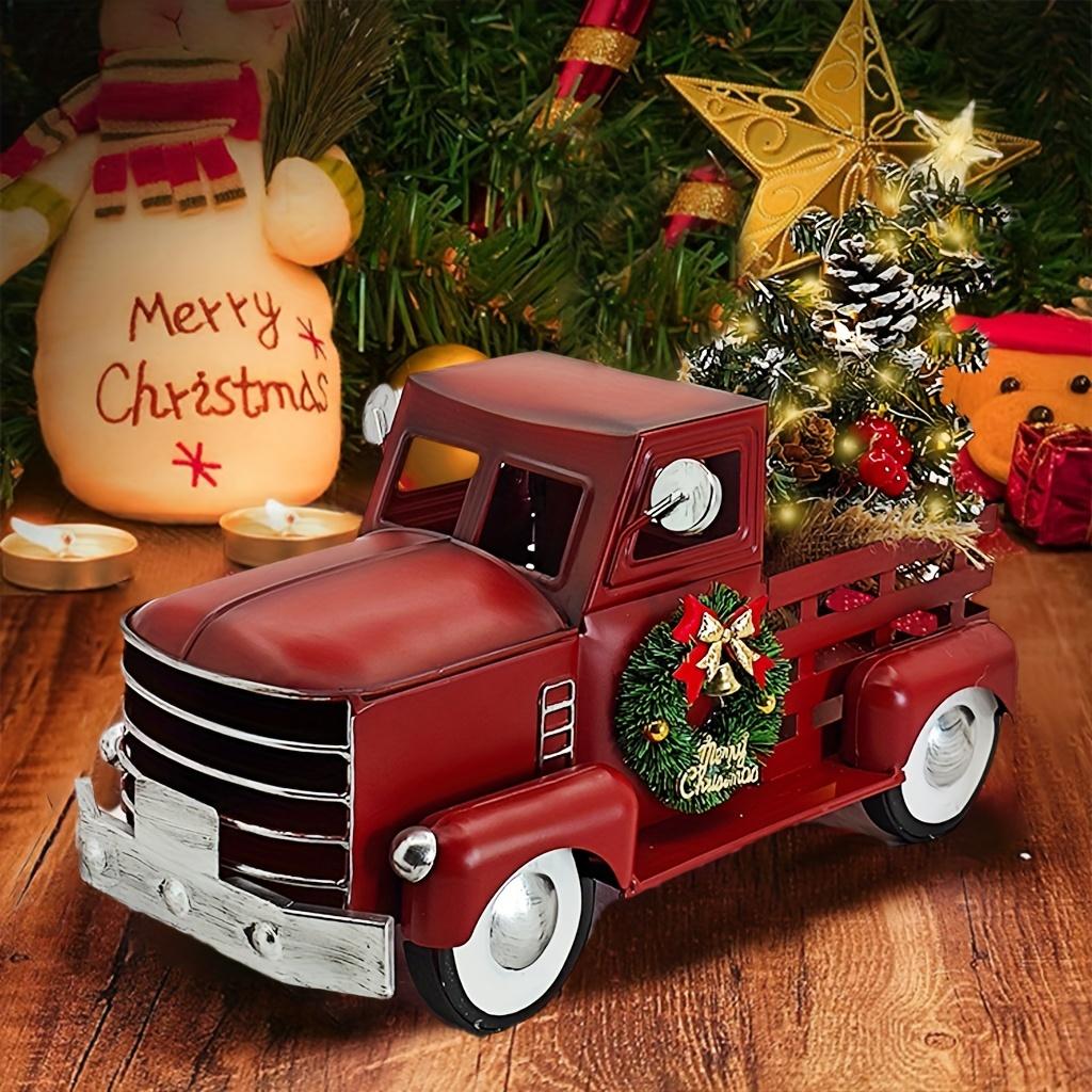 Винтажный красный рождественский декор грузовика с теплыми белыми мигающими огнями - Деревенский стиль фермерского дома, Металлический пикап с елкой для праздничного дома, Уникальная идея подарка