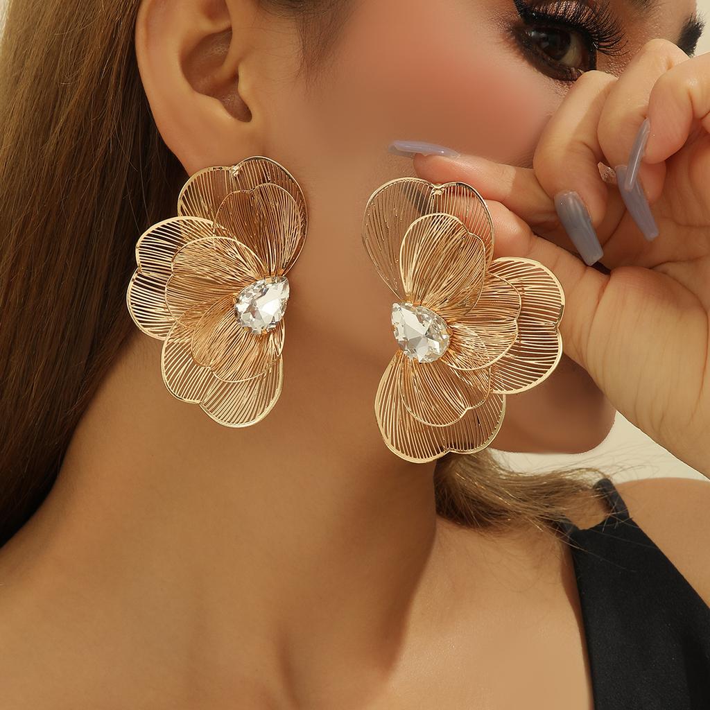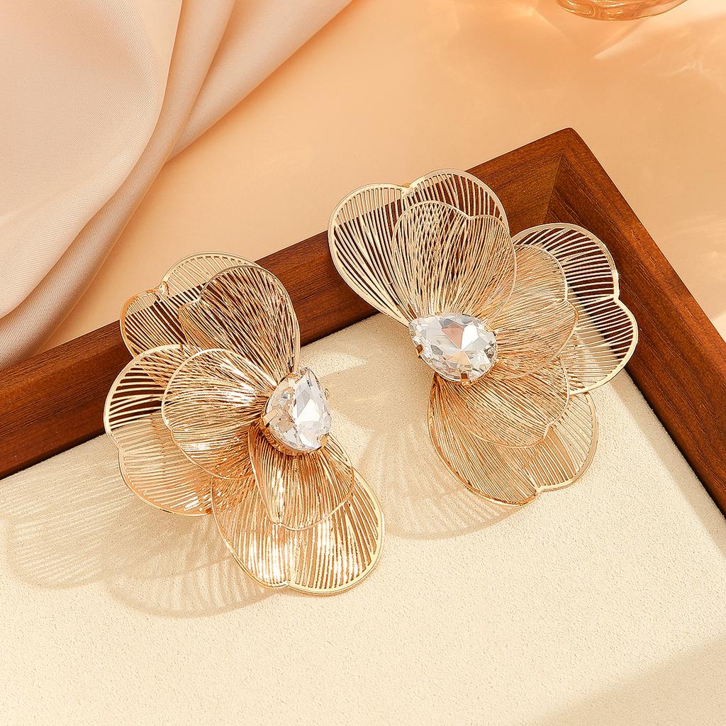 Металлическая гравировка Бабочка Гусиные лапки Многослойное стекло Сверло Европейский и американский стиль Левые и правые женские серьги