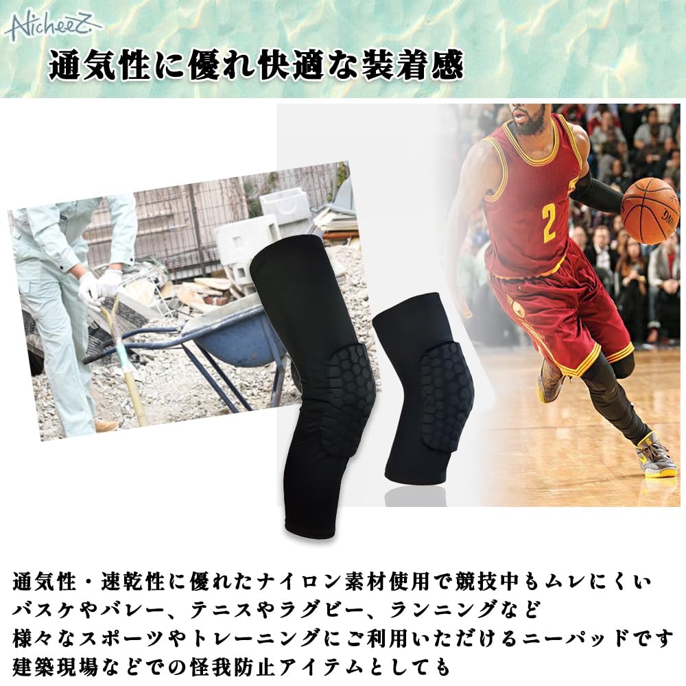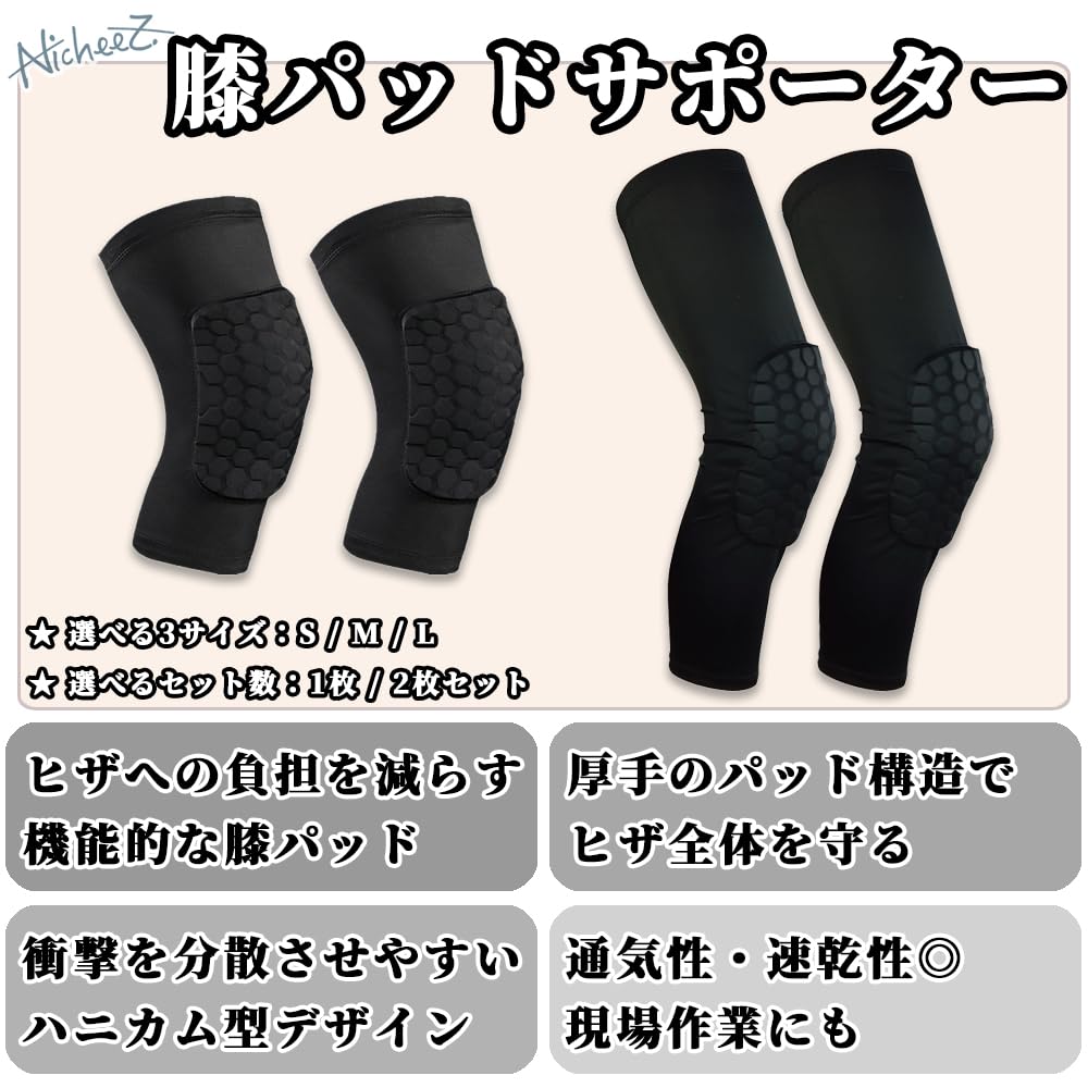 [Полная защита коленей] Эти функциональные наколенники снижают нагрузку на колено во время различных видов спорта и строительных работ.. Толстая набивка обеспечивает полную защиту коленей и смягчает удары.. Выберите одинарный или двойной комплект. [Высокофункциональный дизайн] Набивка изготовлена из толстого полиуретанового материала, который является гибким, но имеет сотовую структуру, рассеивающую удары. Двойной силиконовый противоскользящий воротник предотвращает соскальзывание и обладает высокой эластичностью для удобной посадки.. Доступен в двух размерах: длинный и короткий, в трех размерах (С, М, Л). [Дышащие и удобные] Изготовленные из дышащего, быстросохнущего нейлонового материала, эти наколенники идеально подходят для различных видов спорта и тренировок, включая баскетбол, волейбол, теннис, регби и бег. Они также служат отличным инструментом для предотвращения травм на строительных площадках.. [Содержимое продукта] Наколенники-поддержка (Размер S 1 пара/2 пары, размер M 1 пара/2 пары, размер L 1 пара/2 пары) Материал: цвет: Черный размер S: Длина/приблизительно. 29 см, Верхнее отверстие/прибл.. 26 см-32 см, Нижнее отверстие/прибл.. 16 см-19 см Размер М: Длина/приблизительно. 30 см, Верхнее отверстие/прибл.. 28см-