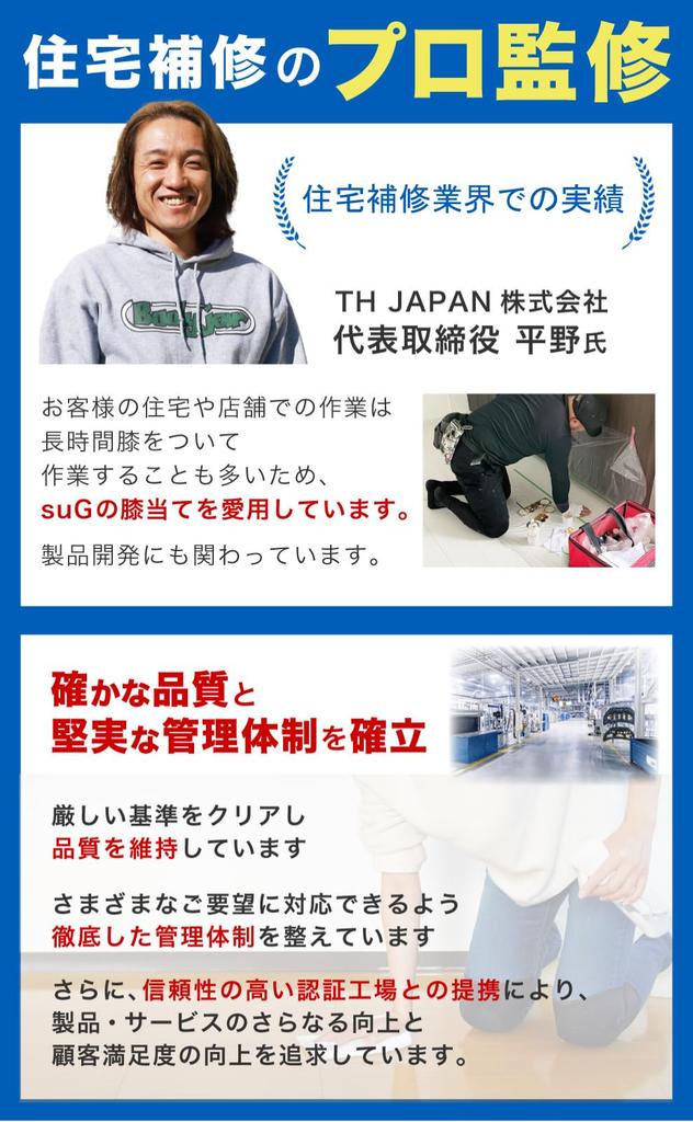 ✅ Наколенники suG контролируются компанией THJAPAN Co., Ltd., которая более 15 лет занимается ремонтом и реконструкцией домов и имеет проверенный опыт не только в Японии, но и за рубежом, и отличаются надежным качеством благодаря отзывам, полученным в ходе тяжелой работы на объектах.