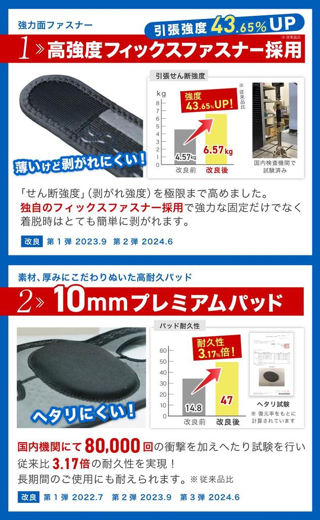 ✅Общие продажи серии превысили 25 000 единиц! (По состоянию на июль 2024 г.) Мы постоянно развиваем наши продукты на основе ценных отзывов клиентов. Первая накладка была тщательно изготовлена с пристальным вниманием к материалам и размеру, что позволило достичь более чем трехкратной долговечности. (рассчитано на основе коэффициента восстановления). Вторая застежка-липучка прошла повторные испытания на прочность и была тщательно отобрана из материалов различных производителей, достигнув 1,4-кратной прочности на разрыв! Это приводит к продукту, который можно использовать в течение более длительного периода времени, чем предыдущие продукты. Оцените его превосходную производительность сами. С момента выпуска продукта 27 июня 2024 года были внесены дальнейшие улучшения.