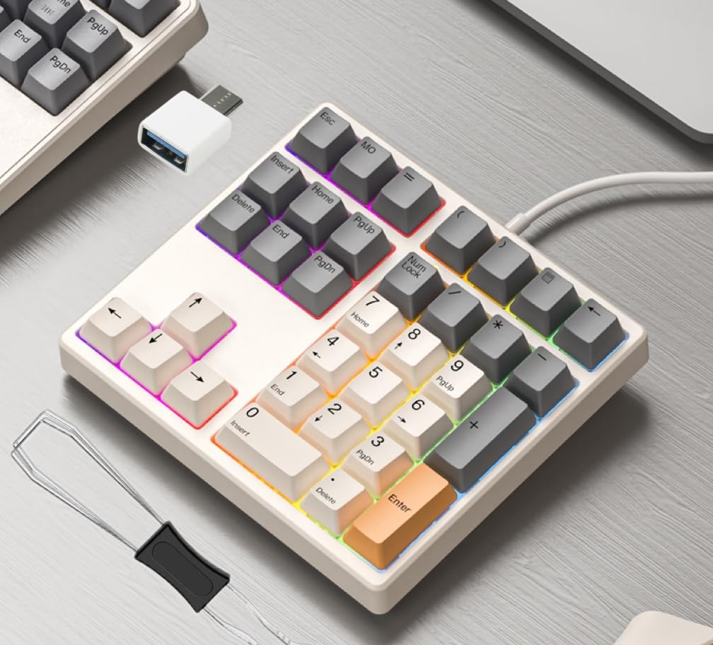 Механическая цифровая клавиатура Levieny на 34 клавиши, проводное USB-подключение с мини-клавиатурой Type-C для ПК и ноутбуков Windows, для финансовых кассиров и безопасности (Красные переключатели) 1. Макет: 34 клавиши 2. Интерфейс продукта: Тип-C 3. Размеры продукта: 134x149x39мм 4. Системные Требования: Подходит для систем Windows SXP или выше, Mac OS: 1. Пользователи ноутбуков и настольных компьютеров 2. Профессионалы в сфере финансов, коммерции, банковского дела и индустрии ценных бумаг 3. Учителя проверяют работы 4. Кассиры 5. Использовать с клавиатурами без цифр. Внешний вид может варьироваться в зависимости от партии, но это не влияет на использование.. содержимое пакета: 1 x Механическая цифровая клавиатура, 1 x Кабель для передачи данных USB-C — USB-A, 1 x USB-адаптер, 1 x Инструмент для снятия переключателей Это единственное содержимое пакета, перечисленное выше; другие продукты не включены. уведомление: Из-за различий в освещении и отображении цвет и размер фактического продукта могут незначительно отличаться от того, что показано на веб-сайте.. Также,
