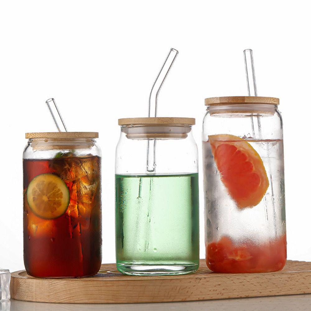 Bamboo Lids Matcha Glass With Straw Coffee Mug Mason Jars for Cocktail Whiskey Milk Juice Cola