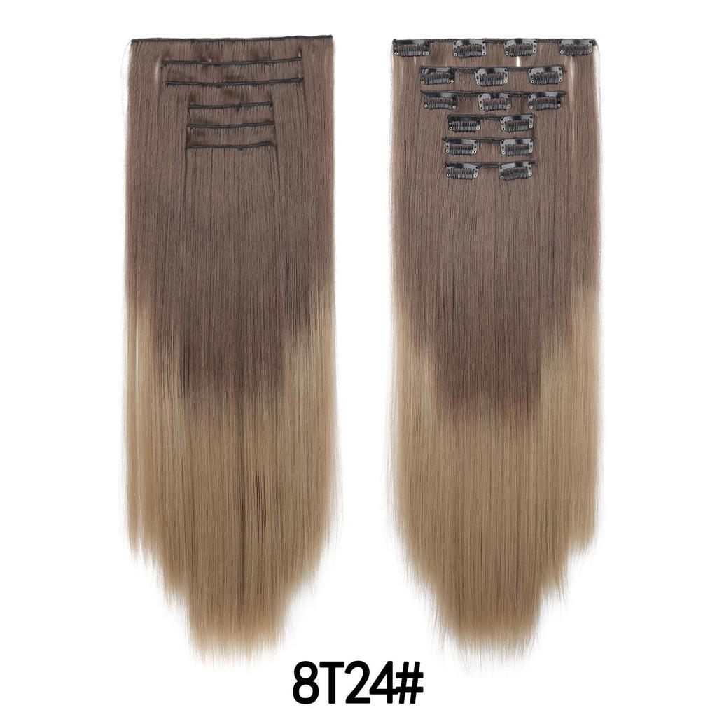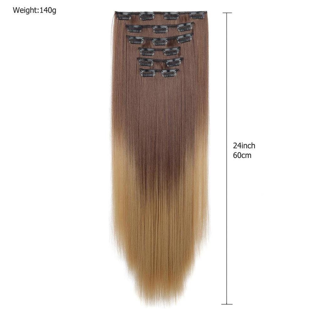 Набор из 6 штук Накладные волосы на заколках 24 дюйма Длинные прямые волосы На всю голову Цвет Омбре Градиент Натуральный вид Для ежедневного использования