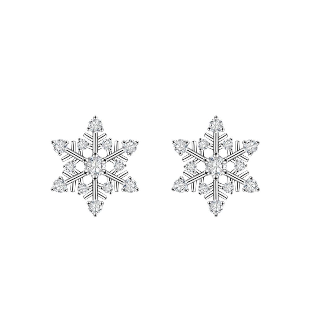 Круглой огранки серьги-пусеты из стерлингового серебра 925 пробы с муассанитами в форме снежинок