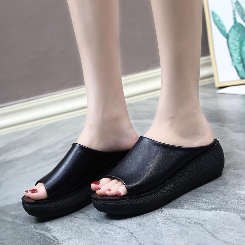 Однословные тапочки женская мода уличная обувь сандалии корейская версия толстая подошва клиновидный каблук женская обувь