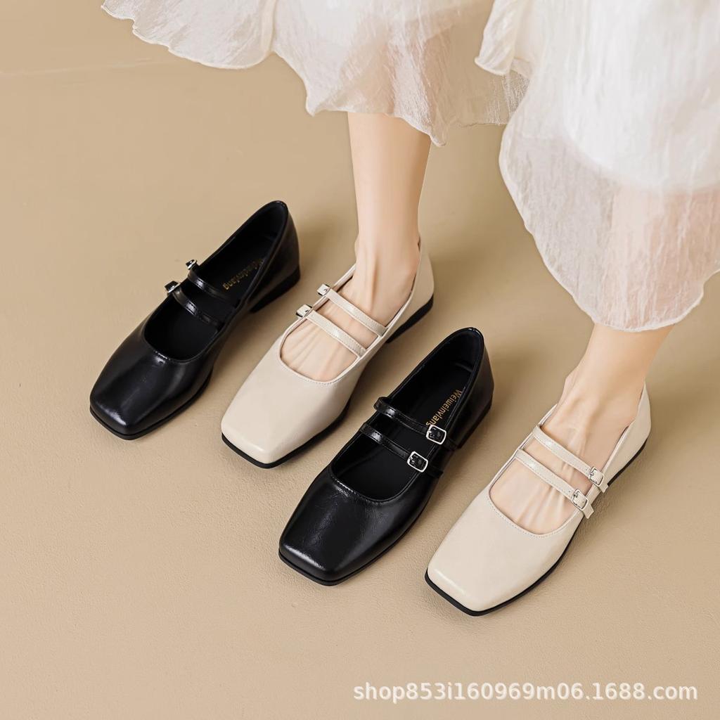 Square head flat bottom silver ladyshoes women's 2025 summer thick heel French retro one-word buckle with soft sole Muller single shoes women — купить товар онлайн с бесплатной доставкой по всему миру!