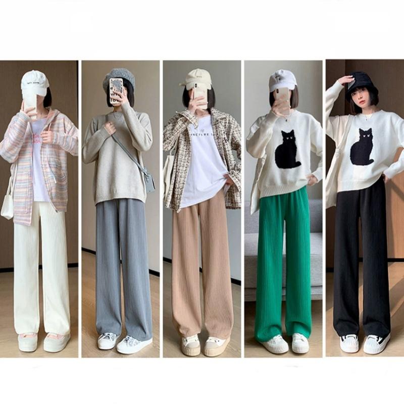 Женские широкие вельветовые брюки в вертикальную полоску на осень и зиму, свободные и тонкие, с высокой посадкой, драпирующиеся, прямые, повседневные