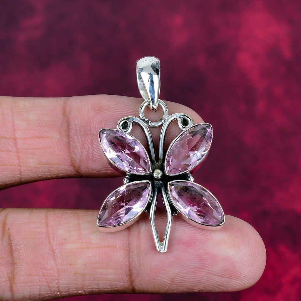Подвеска с розовым кунцитом, драгоценный камень, кулон из стерлингового серебра 925 пробы, ювелирное изделие ручной работы, кулон с камнем по дате рождения, подарок для него