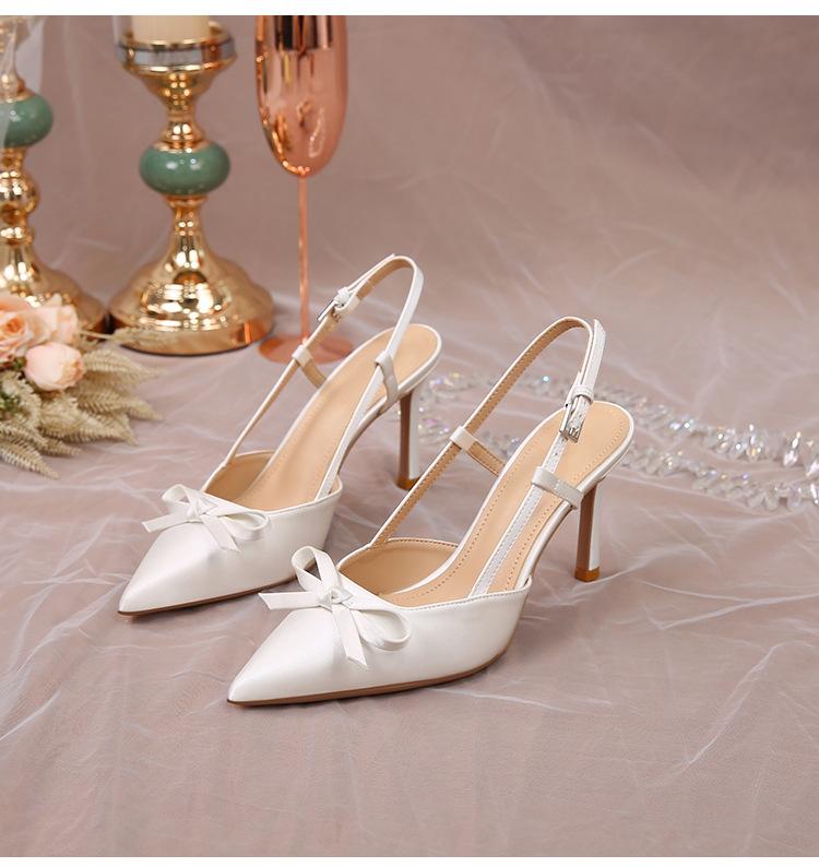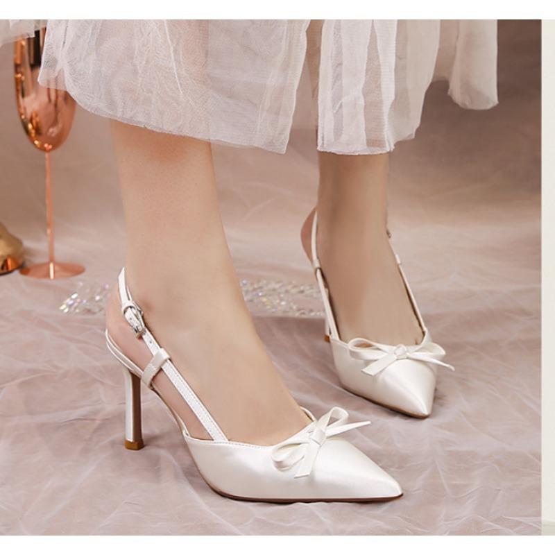 Женские туфли-лодочки Белые свадебные туфли Невеста Роскошные атласные туфли с бабочкой и острым носком Регулируемые туфли на каблуке Элегантные женские туфли на каблуке
