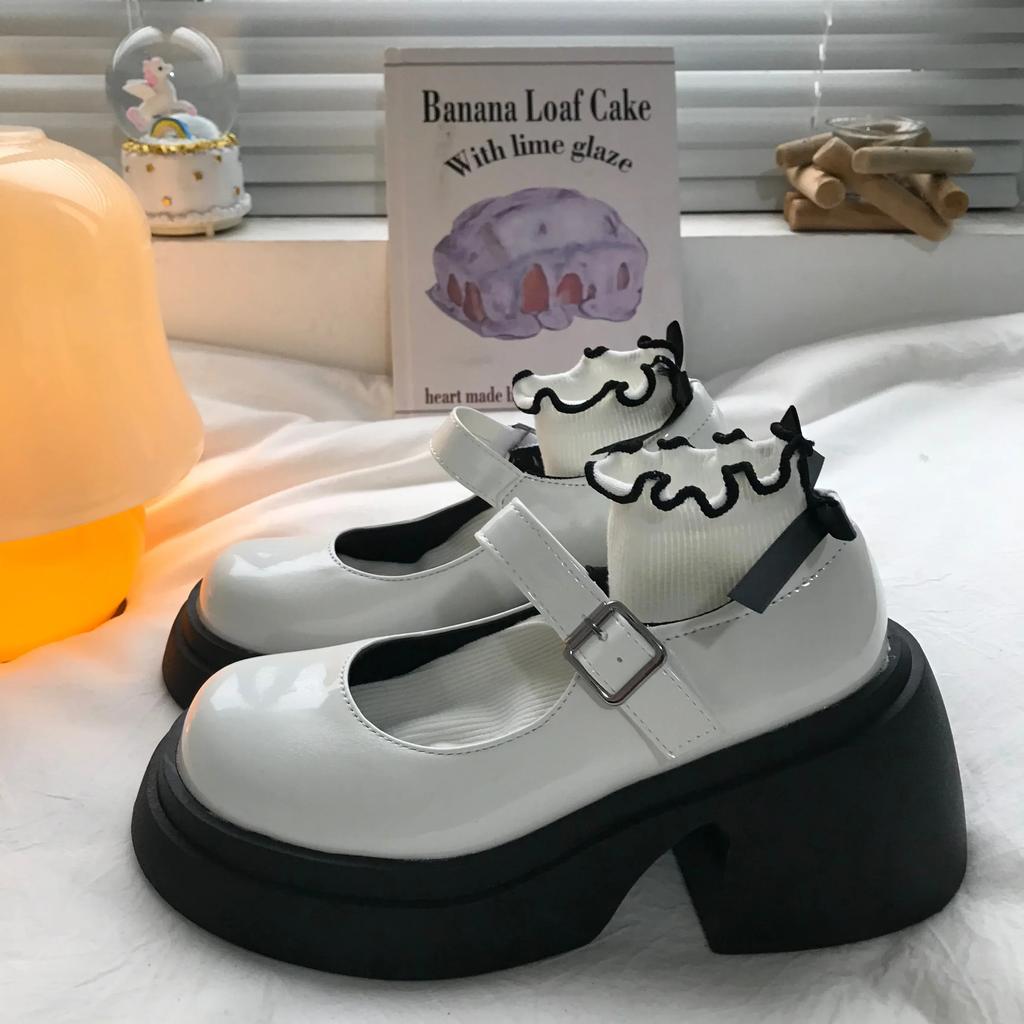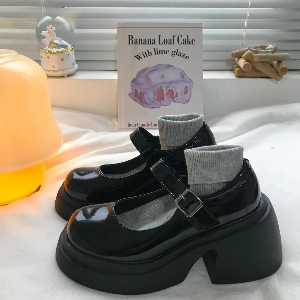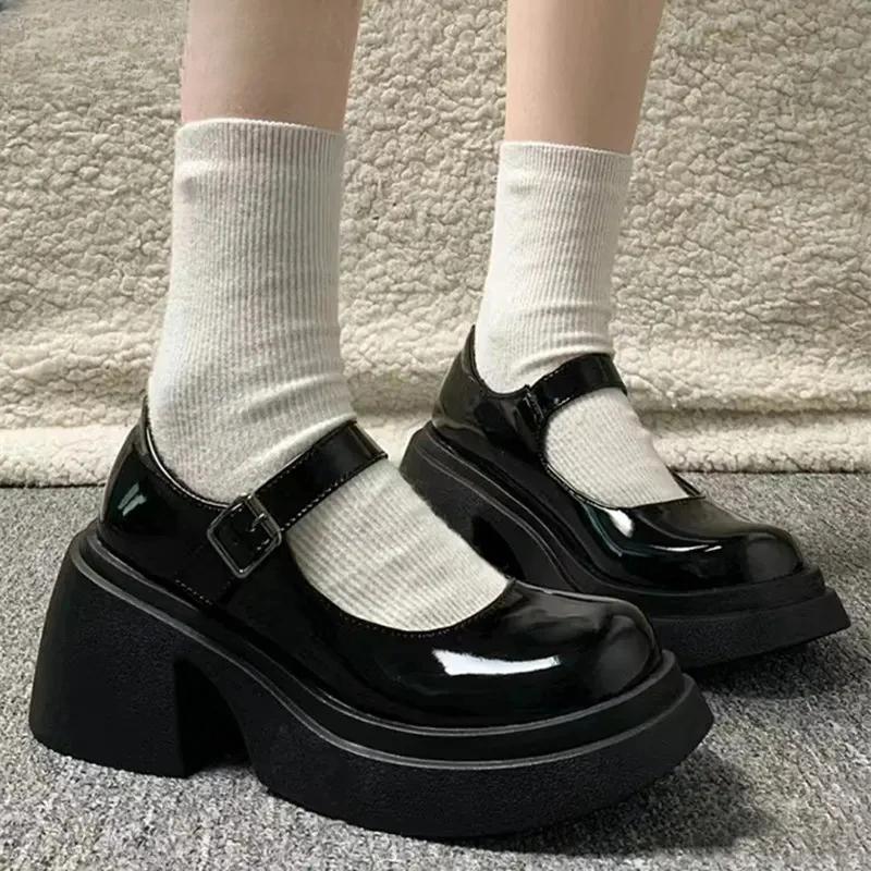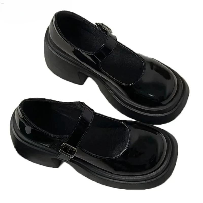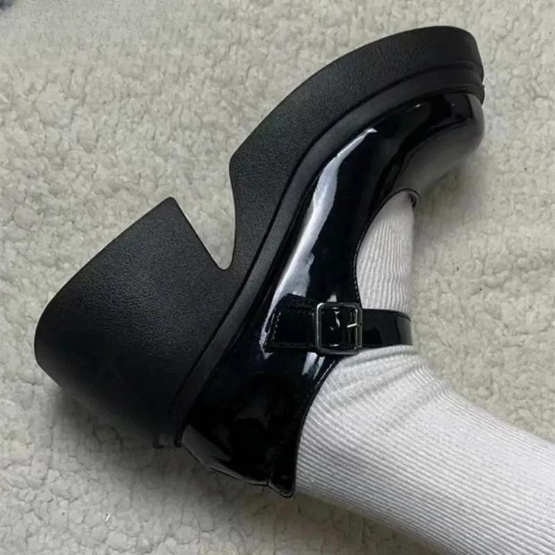 Туфли Мэри Джейн на платформе, новинка 2024 года, женская обувь, женские модные уличные туфли в стиле Лолиты на толстом каблуке, туфли-лодочки с круглым носком и ремешком на щиколотке