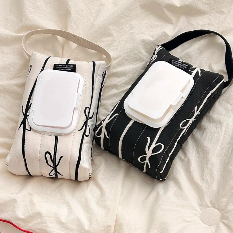 Корейский стиль Полосатый бант Автомобильный держатель для салфеток для дома Сумка для салфеток с откидной крышкой и вытягиванием для подвешивания