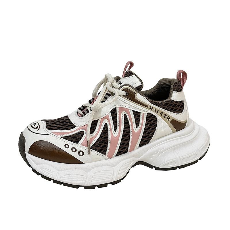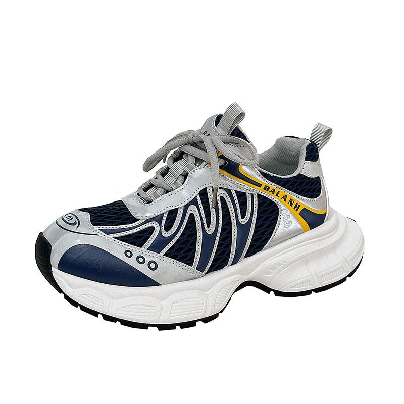 Парижская мода, кроссовки на толстой подошве, увеличивающие рост, женские, 2025 новинка, ретро-расцветка, сетчатые дышащие повседневные спортивные туфли