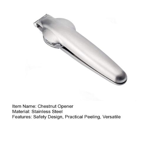 Дизайн безопасности: Открывалка для каштанов имеет гладкую поверхность и нескользящую ручку для удобного использования без травмирования рук.. Элегантная цельная конструкция и толстый материал дужки обеспечивают надежный захват и приятные ощущения от чистки.