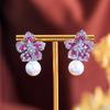 Изысканные серьги-подвески с цирконами, с кубическим цирконием нежного розово-красного цвета, в виде милого цветка и жемчуга, для женщин, шикарные украшения для свадебной вечеринки E1157