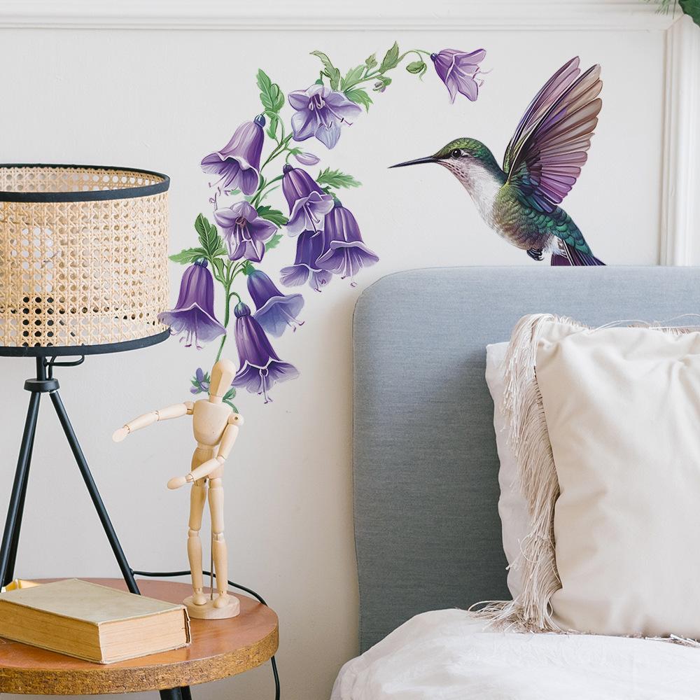Фиолетовые ипомеи Маленькие птички, Спальня Гостиная Прихожая Домашний фон Украшение Наклейки на стену