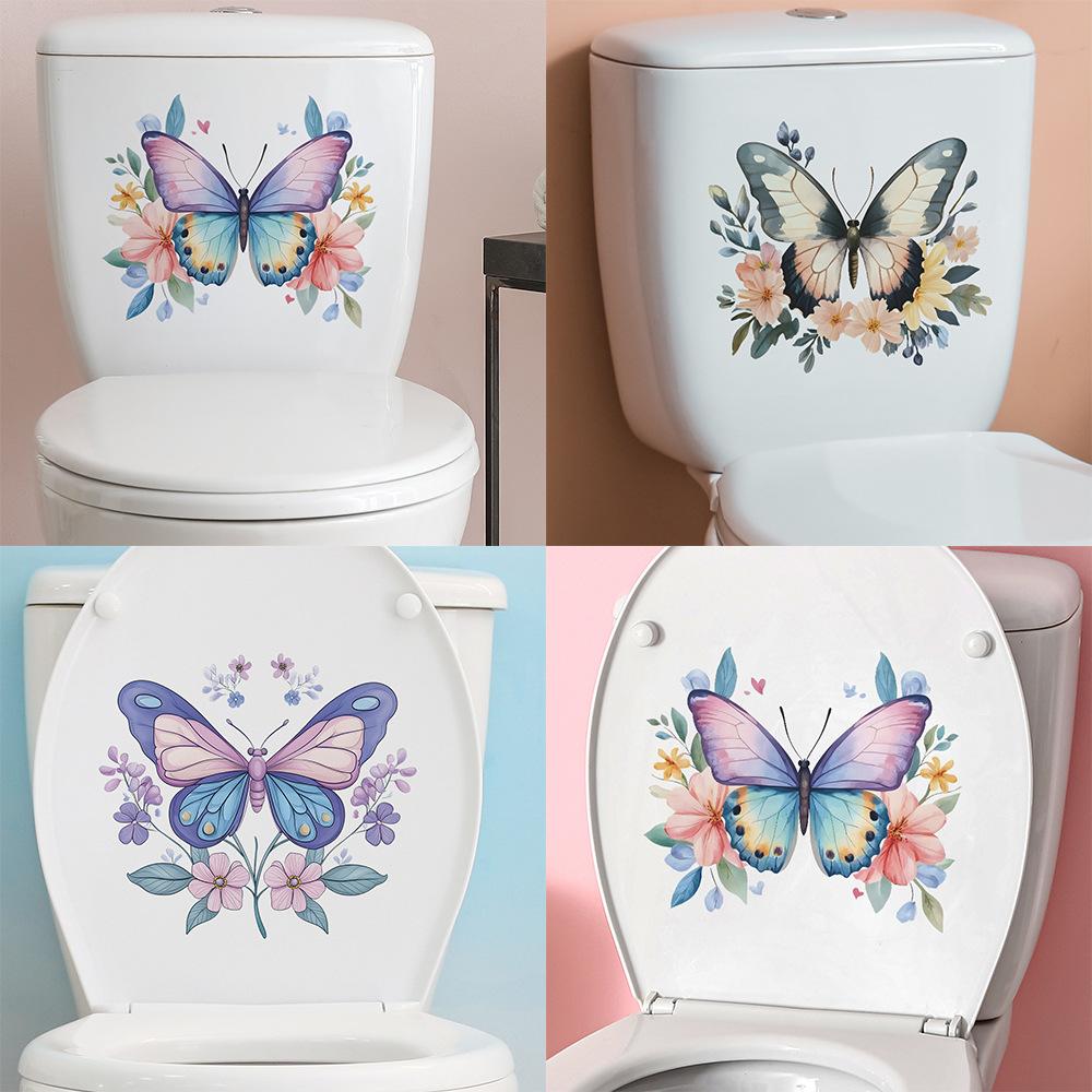 Раскрашенные цветы-бабочки Наклейки для ванной, туалета и унитаза для украшения дома