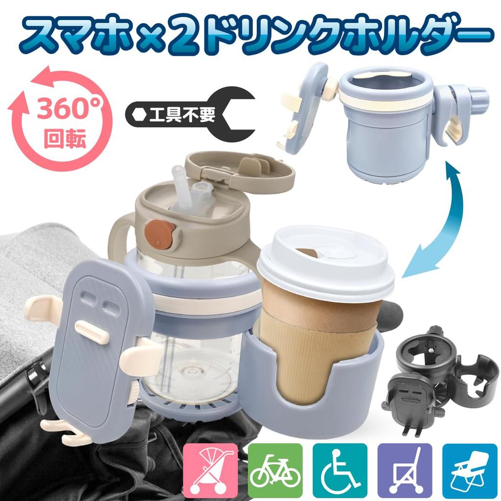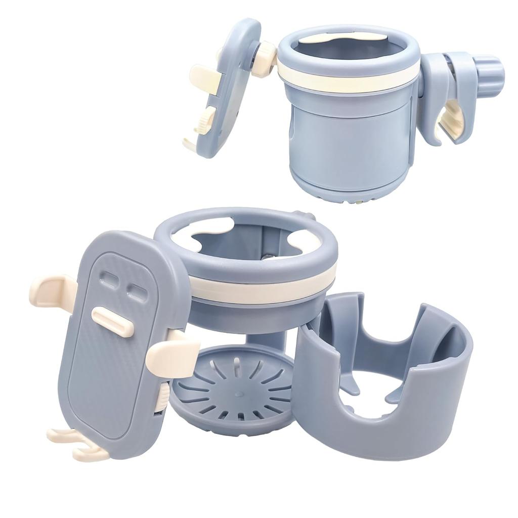 Держатель для напитков со смартфоном двойной для колясок и велосипедов подставка, хранение, (синий)