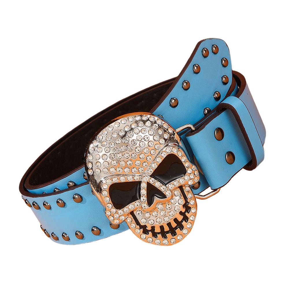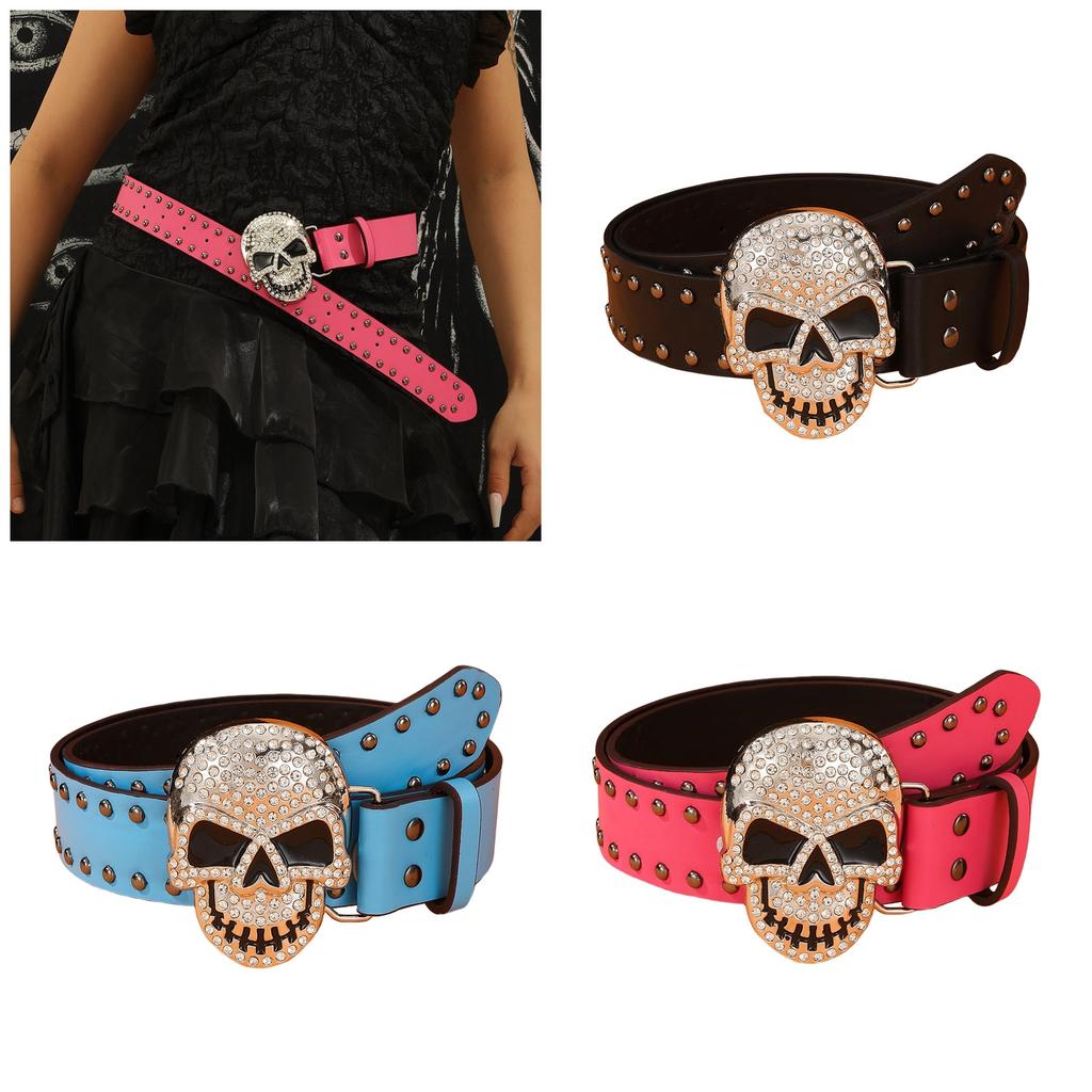 Панк Ремень с Пряжкой в виде Черепа для Брюк Ремень с Пряжкой из Страз для Джинсов Ремень для Уличных Танцев Женский Мужской Унисекс Аксессуары для Талии