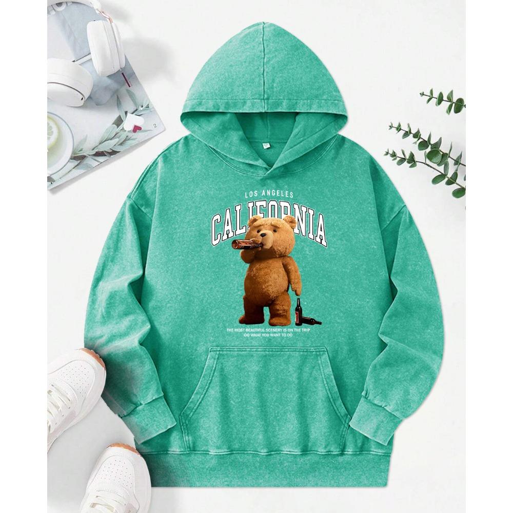 Худи с принтом кавайного медведя, пьющего пиво, женский осенний хлопковый пуловер с карманом, оверсайз