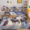 Рождественская карета, снежная сцена, 3D-принт, полиэстеровая наволочка, пододеяльник, набор из двух или трех предметов, можно