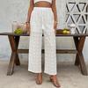 Женские летние брюки эластичные с высокой талией с вырезами свободные на кулиске прямые брюки