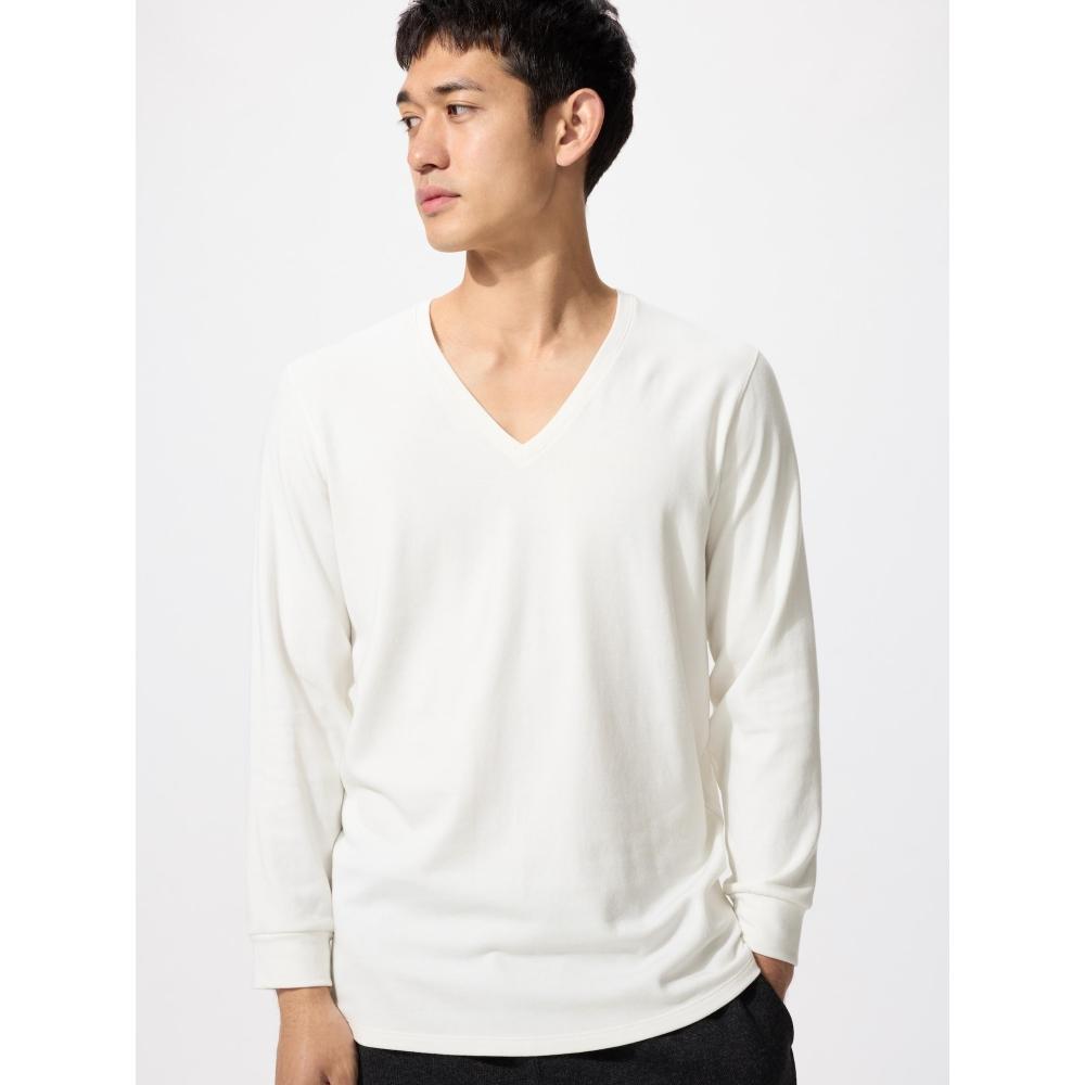 UNIQLO Extreme Warm Heattech Хлопковая футболка с V-образным вырезом и рукавом 3/4