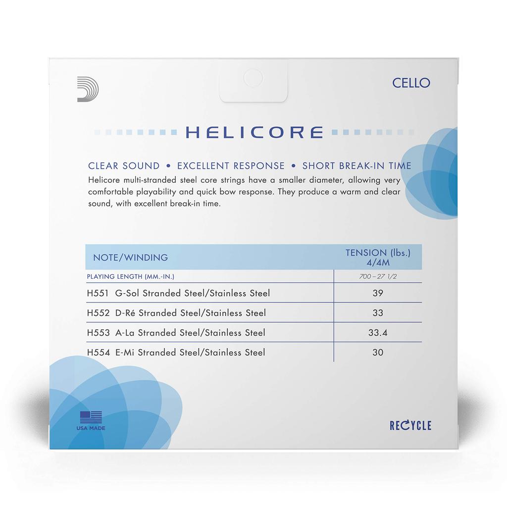 D'Addario Cello Strings Helicore Fourths-Tuning Set H550 44M Medium Tension